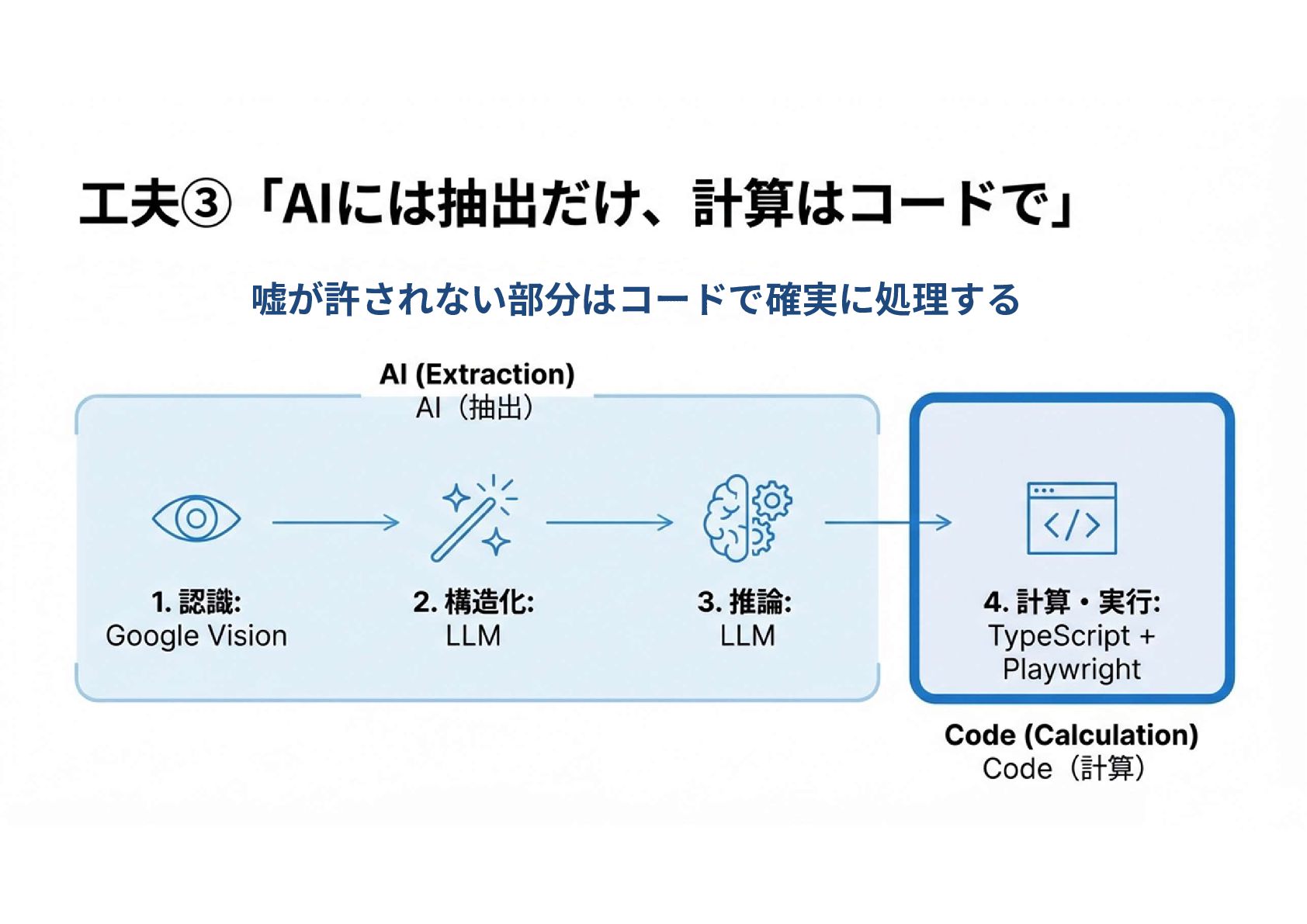 嘘が許されない部分はコードで確実に処理する