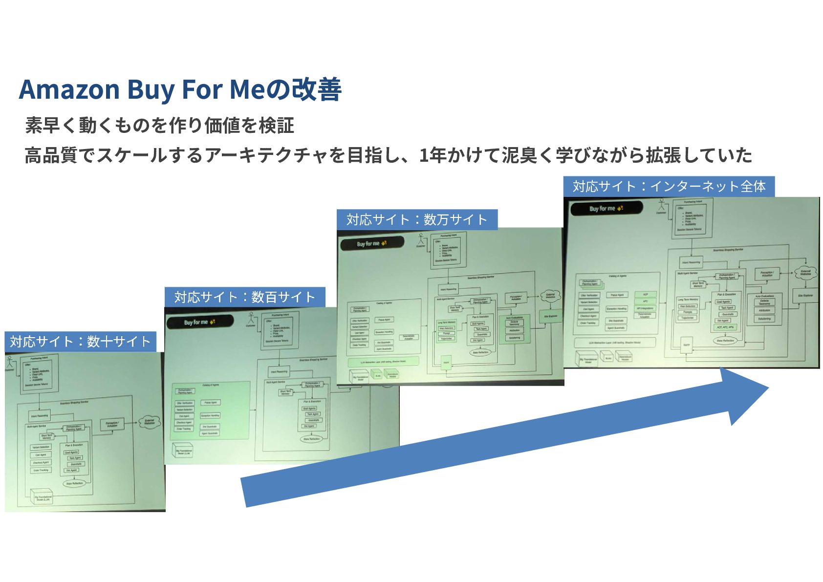 素早く動くものを作り価値を検証 高品質でスケールするアーキテクチャを目指し、1年かけて泥臭く学びながら拡張していた 対応サイト:数十サイト 対応サイト:インターネット全体 対応サイト:数百サイト 対応サイト:数万サイト