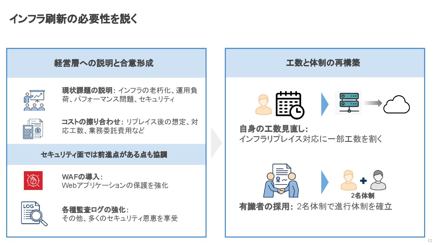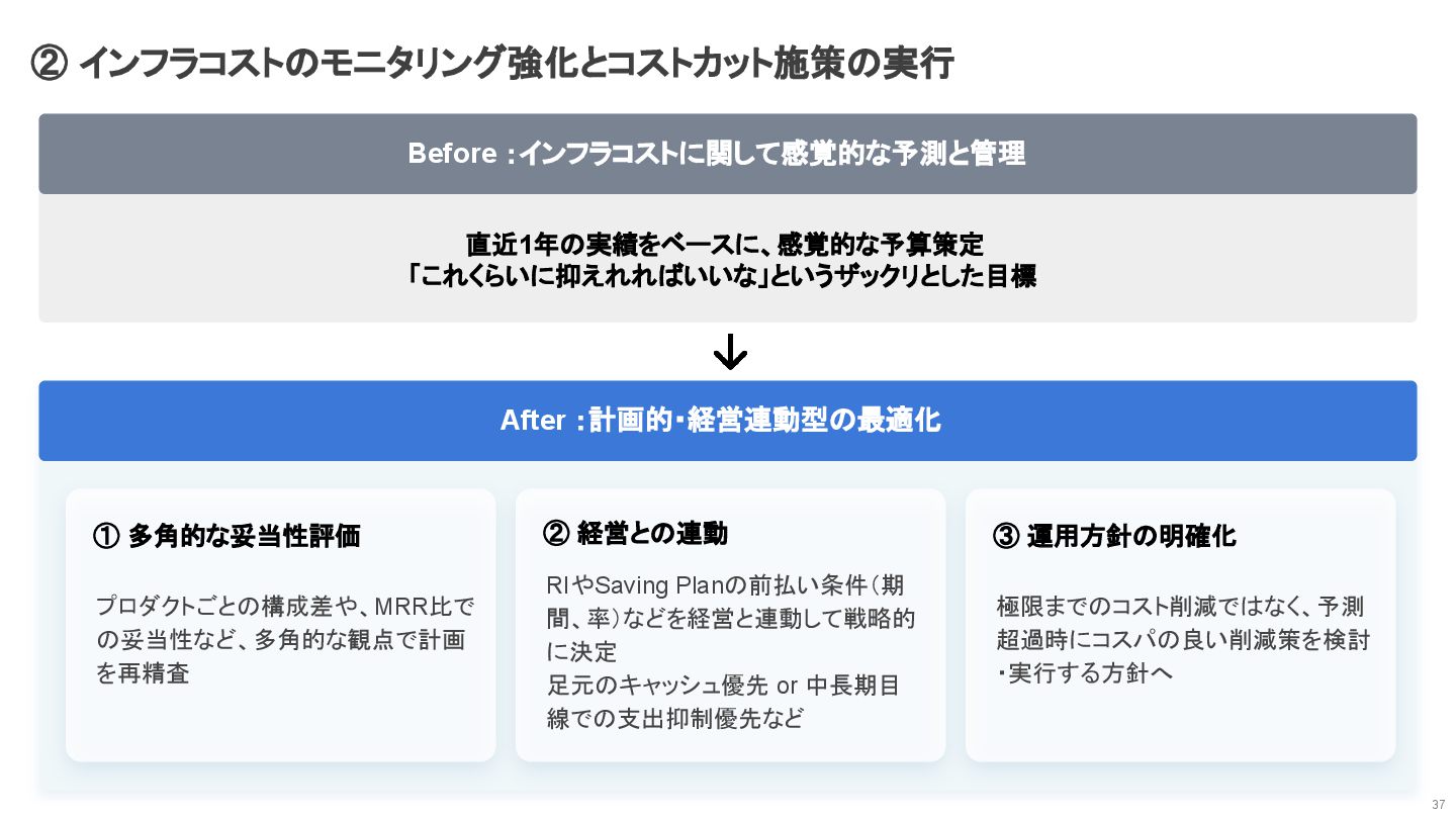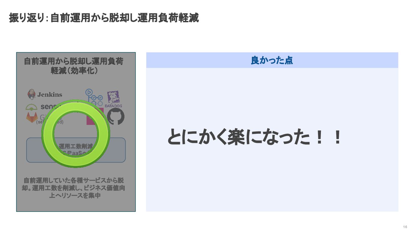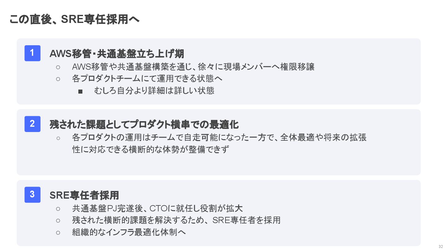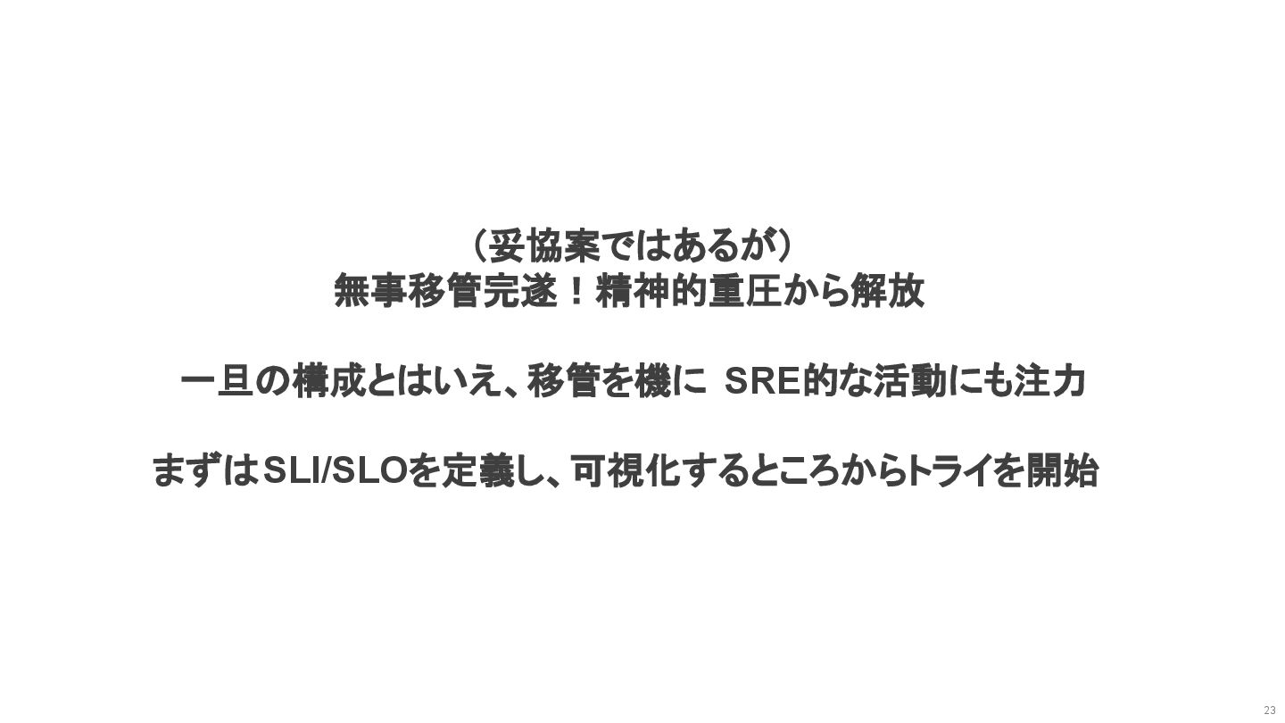 作成されるリスク 03. 効果 品質と統制の壁 • SREのレビュー待ち時間 ゼロ Lambda、SQS等のアプリ関 連リソースは、SREの承認なし で即時デプロイ可能 • SREの役割シフト 「承認のボトルネック」から、 「ガードレール設計者」へ 02. 解決 ガードレールの構築 • GitHub Copilot / TFlint 開発者はPR依頼前に、静的 解析とAIサポートでコード品質 を自己解決・向上 • AWS Control Tower 不適切なリソース作成をシス テム的に予防・ブロック(例: リージョン使用制限) Terraform運用における課題の解決 43 SREを「ボトルネック」から「ガードレール」へ変革し、開発スピードとガバナンスを両立する