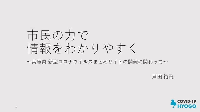 市民の力で 情報をわかりやすく ~兵庫県 新型コロナウイルスまとめサイトの開発に関わって~ 芦田 裕飛 1