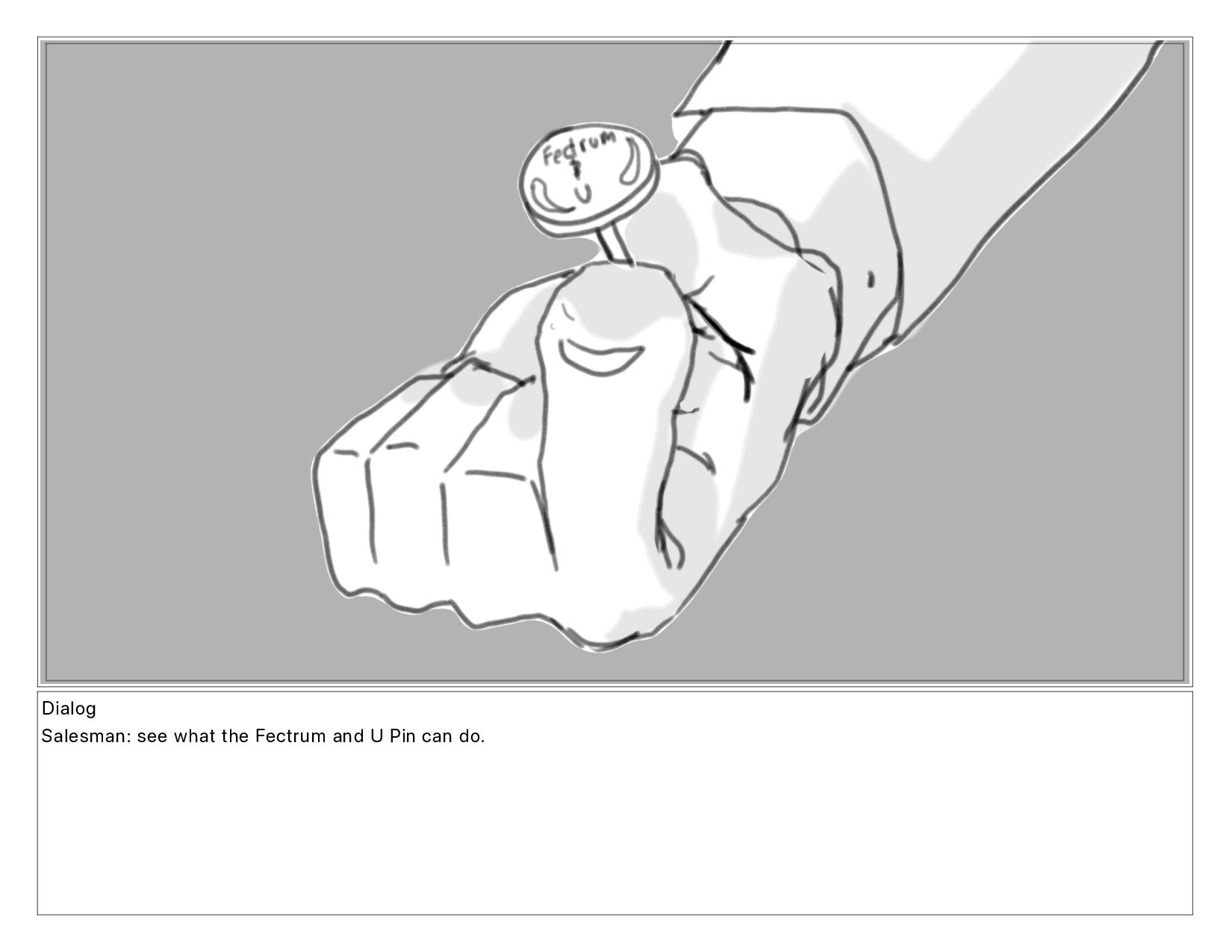 Dialog Saleman:..using our Fectrum and U's pin that sticks anything
