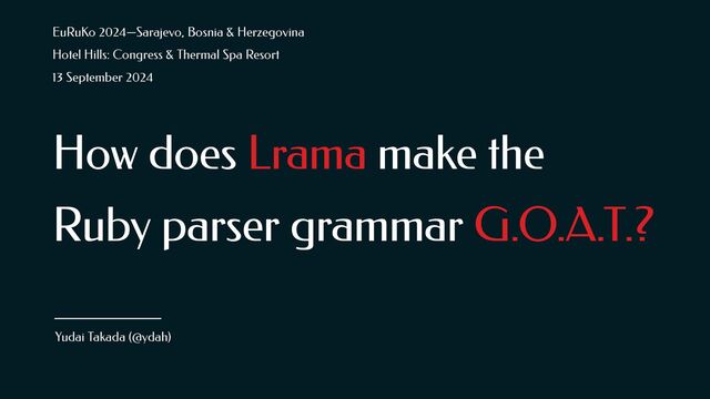 EuRuKo 2024「How does Lrama make the Ruby parser grammar G.O.A.T.?」の発表スライド。