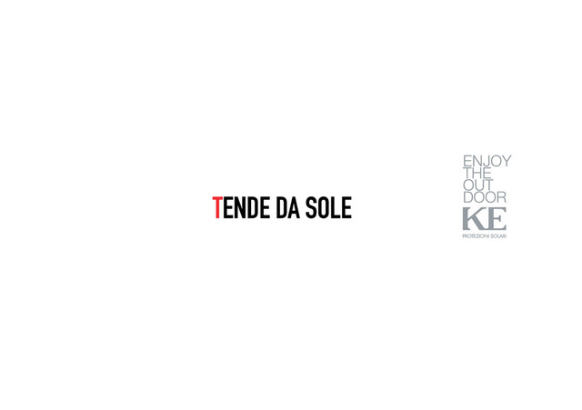 presente in 20 nazioni nelle quali commercializza la propria gamma produttiva in maniera diretta o per mezzo di rivenditori, distributori e installatori autorizzati ed è punto di riferimento per tutte le aziende del settore. L’azienda è sinonimo di qualità, tutti i materiali utilizzati per la costruzione dei prodotti sono altamente affidabili e derivanti da materie prime controllate. La forte propensione alla ricerca e all’innovazione, l’impegno nella selezione di ma- teriali innovativi e la qualità dei materiali utilizzati unitamente all’attenzione alla loro funzionalità, costituisce il valore intangibile più importante della società, come la grande sensibilità acquisita nella ricerca del design abbinato alla funzionalità conferi- sce ai prodotti KE una caratteristica unica. KE ha il merito di aver sviluppato nuovi modi di concepire e sfruttare sistemi di protezio- ne solare , offrendo soluzioni innovative che proteggono dai raggi solari e che permettono inoltre di vivere all’aperto in assoluto confort. L’azienda ha sviluppato e continua ad implementare importanti novità, grazie alla co- stante ricerca e sviluppo di nuovi prodotti e tecnologie innovative di alta qualità per valutare e realizzare sempre nuove soluzioni. KE is a leading Brand on the Italian and international market present in 20 countries, where its product range is sold direct or through authorised dealers, distributors and fitters and is a reference point for all businesses in the sector. The company stands for quality: all the materials employed for building the products are highly reliable and made from certified raw materials. The clear research and innovation-oriented attitude, the effort spent in selecting in- novative materials and the quality of the functional materials used in the processes make up the company’s most important intangible asset, while the great awareness acquired in the pursuit of design combined with functionality endows KE products with unique features. KE prides itself on the development of new ways of considering and using shading sy- stems, offering innovative solutions providing sun protection as well as sheer outdoor comfort. The company has devised, and continues implementing, outstanding new fe- atures through constant research and the development of new products, together with high quality innovative technology leading to the assessment and creation of new so- lutions. KE ist ein Markenführer des italienischen und internationalen Markts, der n 20 Ländern vertreten ist, in denen er direkt oder über Händler, Vertragshändler und zugelassene In- stallationsbetriebe seine Produktpalette vertreibt und für alle Unternehmen der Branche einen Bezugspunkt darstellt. Das Unternehmen steht für Qualität, alle für die Fertigung der Produkte verwendeten Materialien sind hoch zuverlässig und stammen von kontrol- lierten Rohstoffen. Der starke Forschungs- und Innovationswille, der Einsatz bei der Wahl der innovativen Materialien und die Qualität der genutzten Materialien, in Verbindung mit der Achtung auf ihre Funktionalität, stellen zweifelsohne den wichtigsten Wert des Unternehmens dar, sowie die große, bei der Entwicklung des Designs, kombiniert mit der Funktionalität erworbenen Sensibilität, die den KE-Produkten einzigartige Eigenschaften verleihen.Der Verdienst von KE ist, neue Methoden zur Konzipierung und Nutzung von Sonnenschut- zsystemen entwickelt zu haben und dabei innovative Lösungen zu bieten, die vor der Sonneneinstrahlung schützen und zudem ein absolut komfortables Leben im Freien ermöglichen.Das Unternehmen hat bedeutende Neuheiten entwickelt und implementiert diese fortlaufend, dank der konstanten Forschung und Entwicklung neuer Produkte und qualitativ hochwertiger innovativer Technologien, um stets neue Lösungen zu beurteilen und zu realisieren. KE es una marca líder en el mercado italiano e internacional, presente en 20 naciones, en las que comercializa su gama de producción de manera directa o mediante comer- ciantes, distribuidores e instaladores autorizados y es punto de referencia para todas las empresas del sector. La empresa es sinónimo de calidad. Todos los materiales utilizados para la fabricación de los productos son altamente fiables y derivan de materias primas controladas. La fuerte propensión a la investigación y a la innovación, el compromiso en la selección de materiales innovadores y la calidad de los materiales utilizados, junto con la atención a su funcionalidad, constituye el valor intangible más importante de la sociedad, así como la gran sensibilidad adquirida en la búsqueda del diseño combinado con la funcio- nalidad otorga a los productos KE una característica única. KE tiene el mérito de haber desarrollado nuevas maneras de concebir y explotar sistemas de protección solar ofreciendo soluciones innovadoras que protegen de los rayos del sol y que, además, permiten vivir al aire libre con un confort absoluto. La empresa ha desarrollado y sigue llevando a cabo importantes novedades, gracias a la constante actividad de investigación y desarrollo de nuevos productos y tecnologías innovadoras de gran calidad para evaluar y realizar soluciones siempre nuevas. KE est une Marque leader du marché italien et international, présente dans 20 pays dans lesquels elle commercialise sa propre gamme directement ou à travers des revendeurs, des distributeurs et des installateurs agréés et c’est une référence pour toutes les en- treprises du secteur. L’entreprise est synonyme de qualité, tous les matériaux utilisés pour la construction des produits sont hautement fiables et ils dérivent de matières premières contrôlées. La forte propension à la recherche et à l’innovation, l’engagement dans la sélection de matériaux innovants et la qualité des matériaux utilisés ainsi que l’attention à leur fonctionnalité, représentent la valeur intangible plus importante de la société, comme la gra