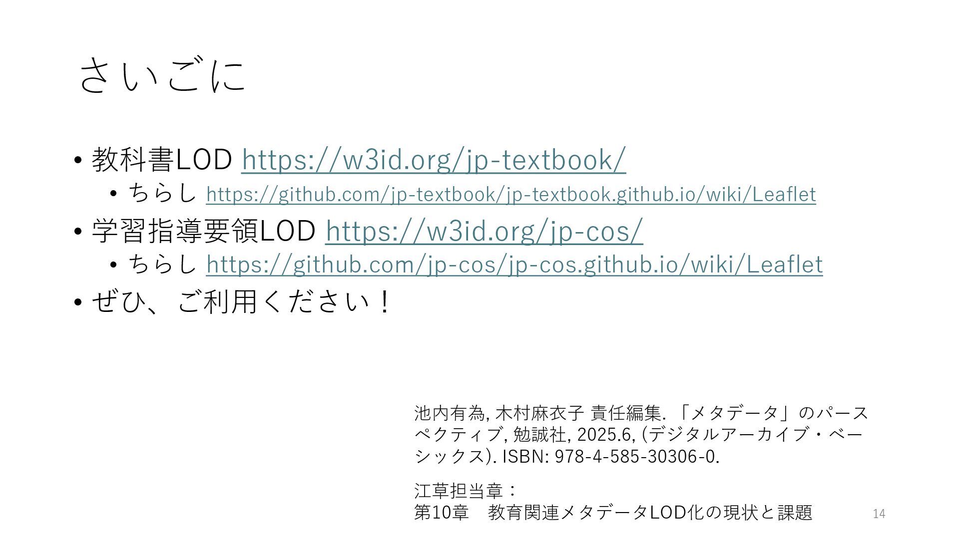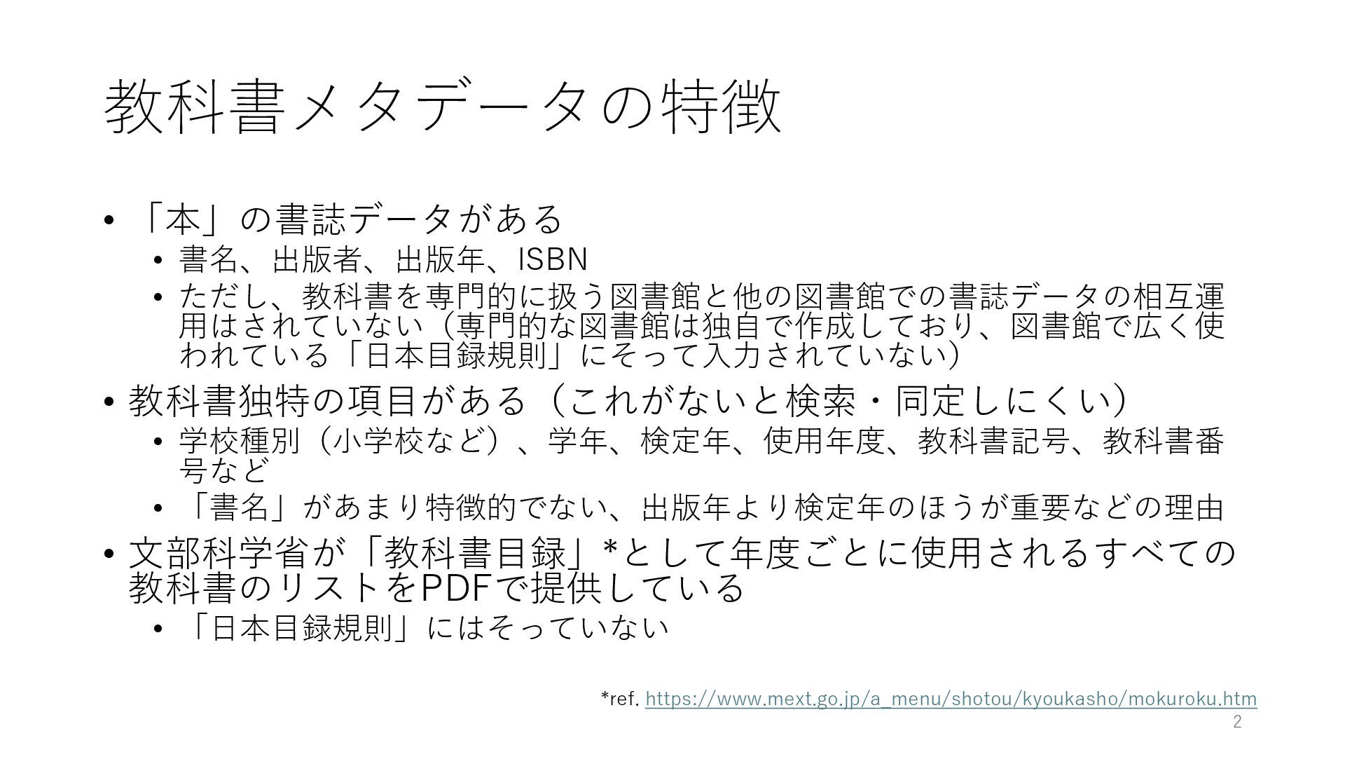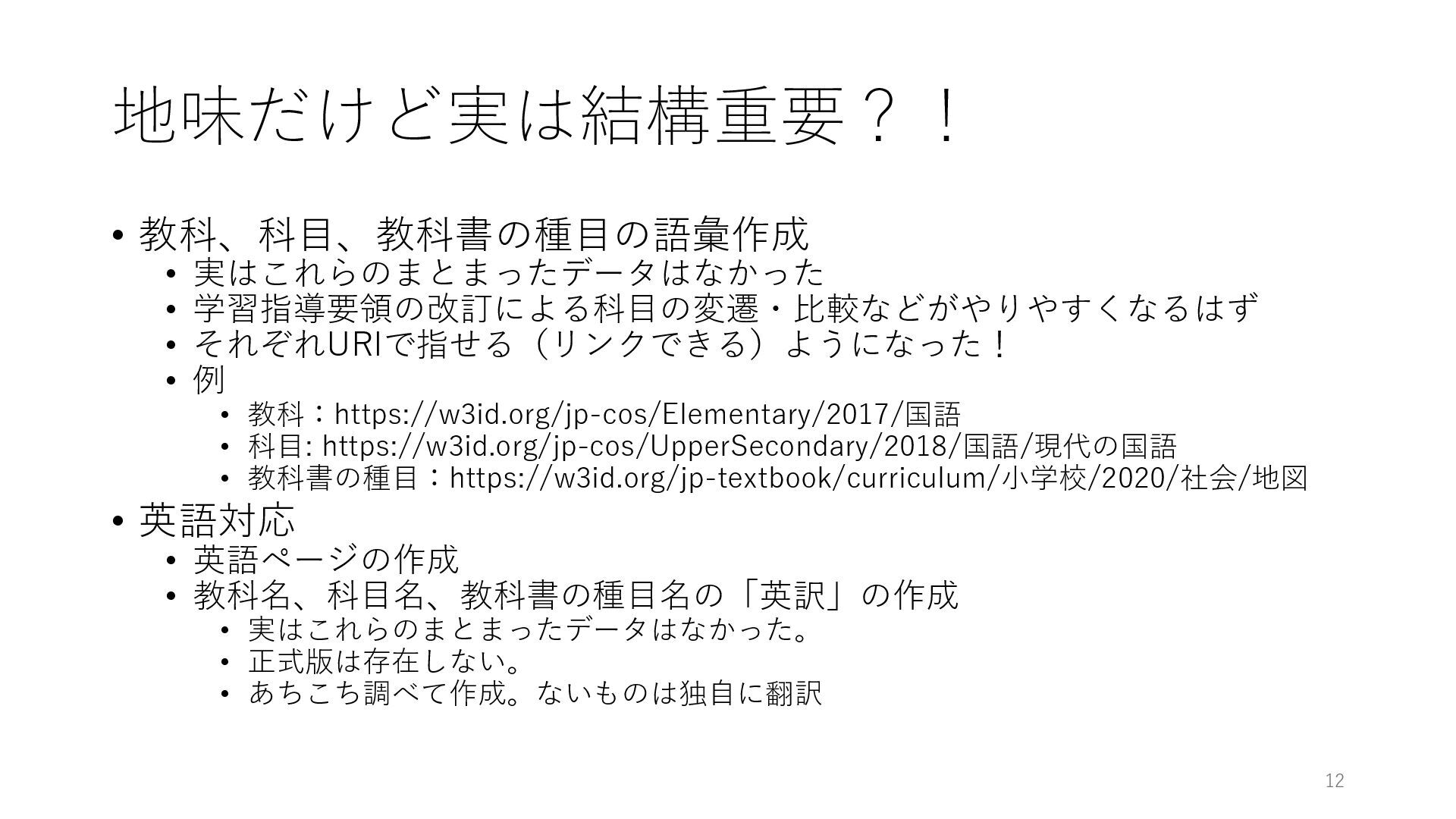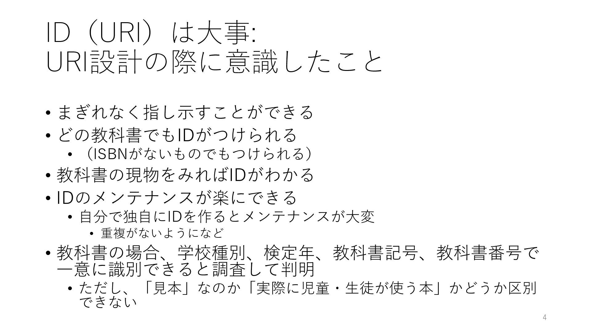 タイトル:教科書メタデータのLOD化で気を付けたこと・工夫したこと・重視したこと