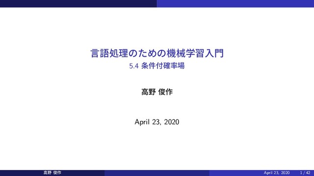 yT ∈Y (P(y1 , y2 , . . . , yT |x)ϕ(x, y0 , y1 )) + y1∈Y y2∈Y · · · yT ∈Y (P(y1 , y2 , . . . , yT |x)ϕ(x, y1 , y2 )) + · · · + y1∈Y y2∈Y · · · yT ∈Y (P(y1 , y2 , . . . , yT |x)ϕ(x, yT −1 , yT )) = y1∈Y ϕ(x, y0 , y1 ) y2∈Y · · · yT ∈Y (P(y1 , y2 , . . . , yT |x)) + y1∈Y y2∈Y ϕ(x, y1 , y2 ) y3∈Y · · · yT ∈Y (P(y1 , y2 , . . . , yT |x)) + · · · + y1∈Y y2∈Y · · · yT −1∈Y yT ∈Y (ϕ(x, yT −1 , yT )P(y1 , y2 , . . . , yT |x)) ߴ ढ़࡞ April 23, 2020 29 / 42
