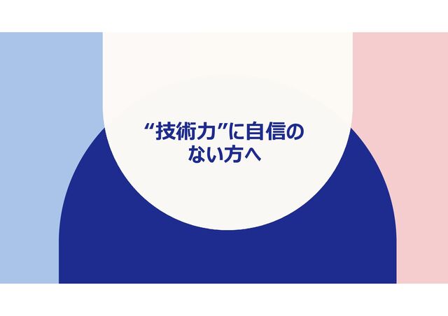 こんな方へ • 業務で上司、先輩から意見を求められたとき、 「なんで技術力のない自分にそんなことを聞くのだろう?」と感じている方 • 自分には技術力がないからこの仕事がうまく行かない、と感じている方 • 自分には技術力がないからこの仕事/会社が向いてない、と感じている方 • あるいは、上記すべての問を延々と考えている過去の私