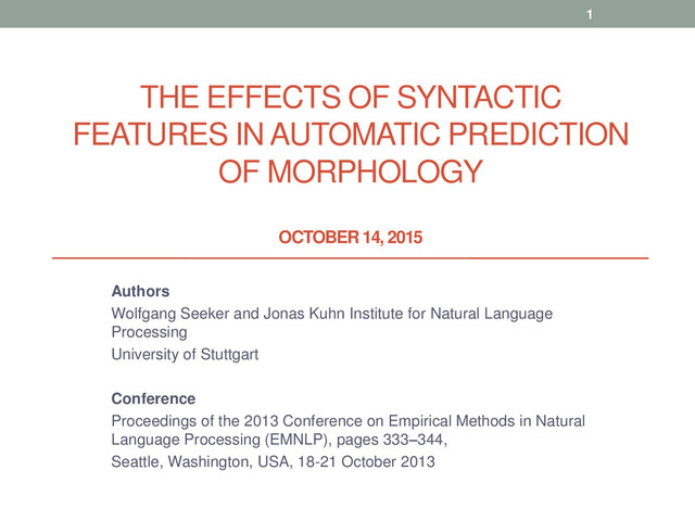 Wolfgang Seeker and Jonas Kuhn Institute for Natural Language