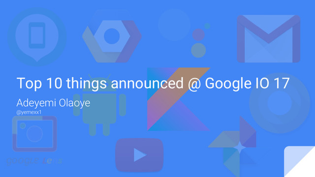 In this presentation, I outline the top 10 things announced at Google IO 2017 as it applies to the Ibadan (Nigeria) Tech Community.