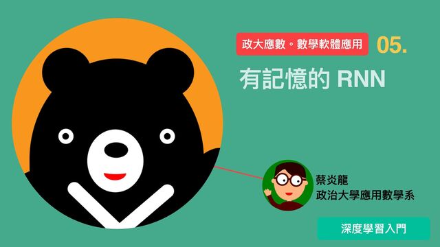 backpropagation RNN ⾃然變成「很深的神經網路」成為⼀個訓練上的問題! ∂L ∂wm ∂w6 ∂w5 ∂w5 ∂w4 ∂w4 ∂w3 ∂w3 ∂w2 ∂w2 ∂w1 × × × × × × x 3 x 4 x 5 ̂ y 3 x m x 2 x 1 ̂ y 1 ̂ y 2 ̂ y 4 ̂ y 5 ̂ y m