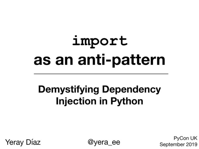 Dependency Injection (DI) is a technique quite common in other programming languages that has never quite fitted into the Python programmer's mindset. Usually disregarded as over-engineering and complex, most of its alleged flaws have little to do with the underlying concepts but more with implementation details of large scale frameworks that obscure its core principles.