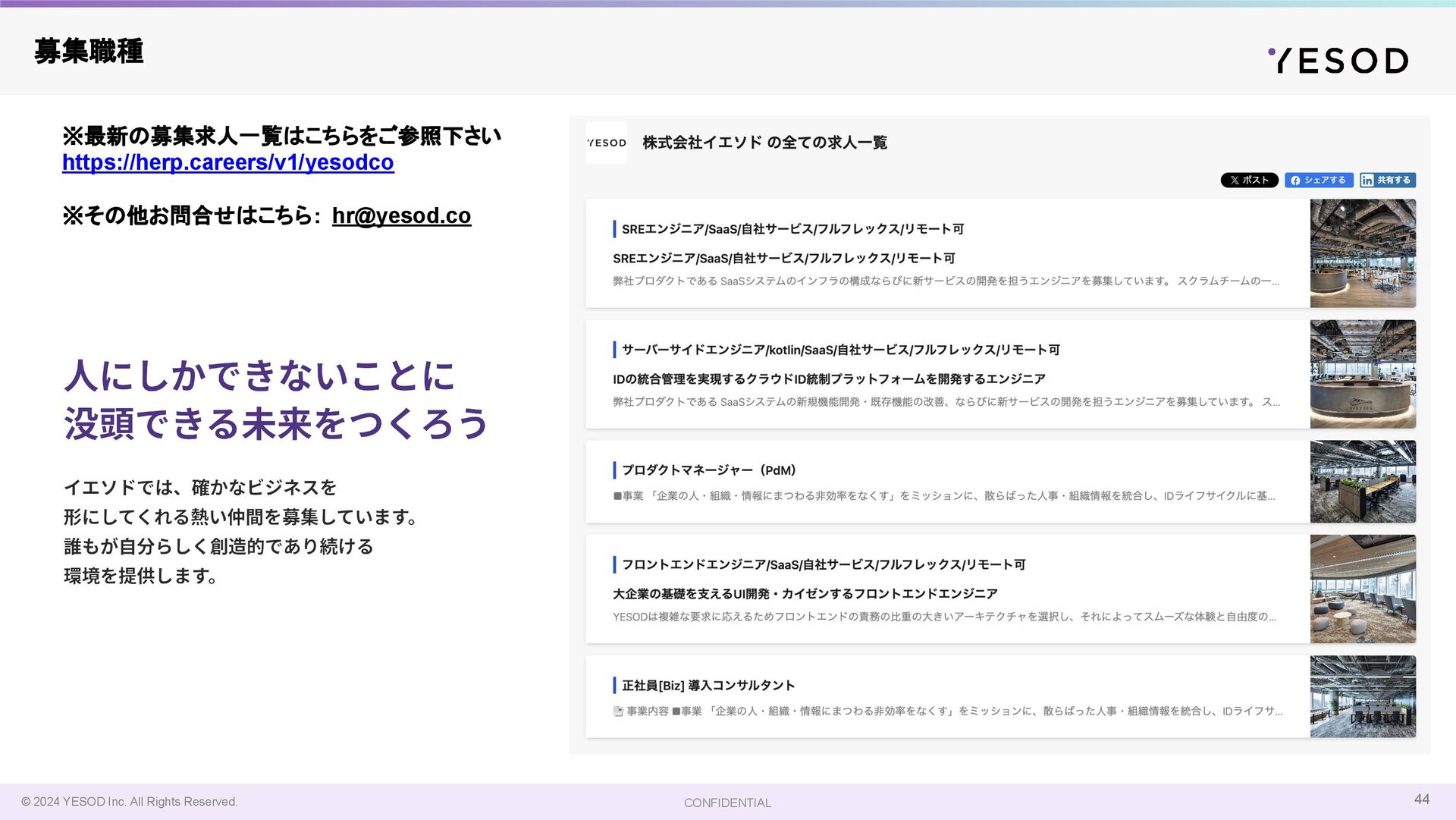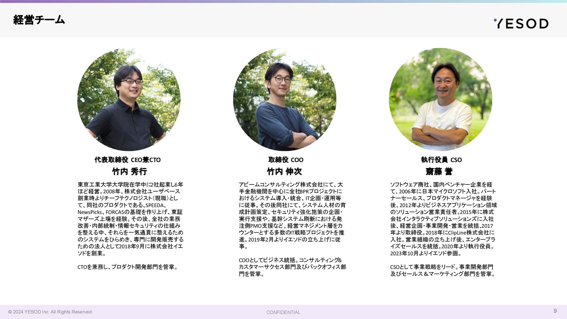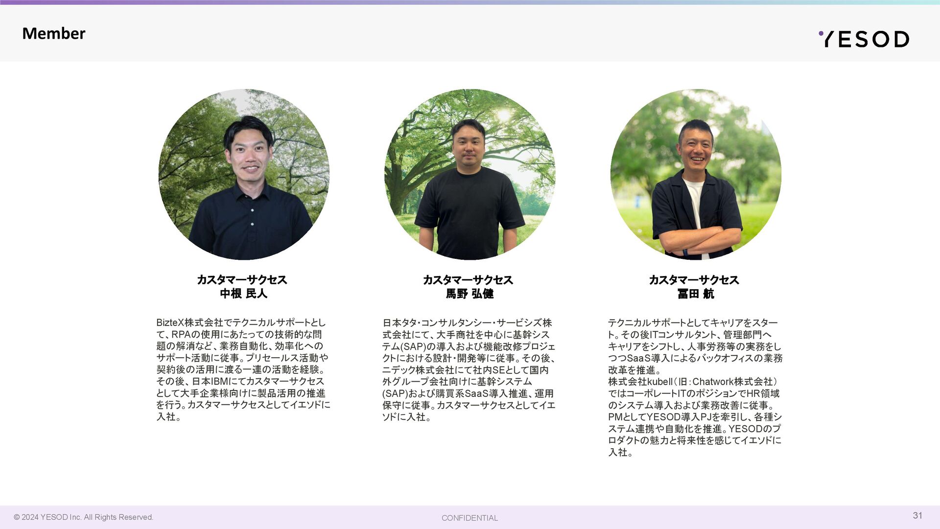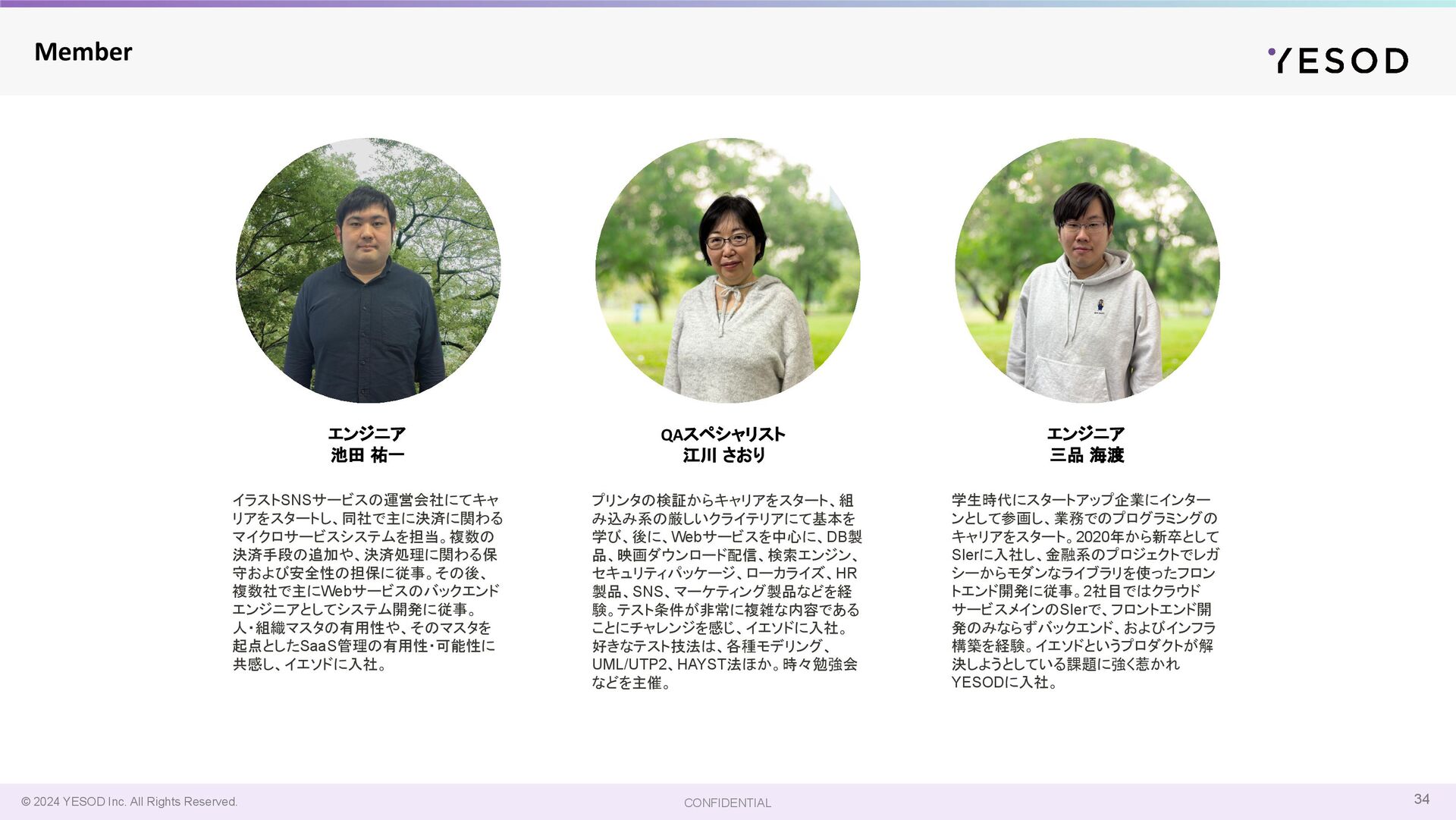 YESOD Inc. All Rights Reserved. CONFIDENTIAL 「Synergy」 共に挑戦を楽しむ 「Disruption」 本質を捉え想像を超える 「Professionalism」誇りを胸にやり遂げる 「Agility」 走りながら考える 「Integrity」 誠実さで信頼を勝ち取る Value 7