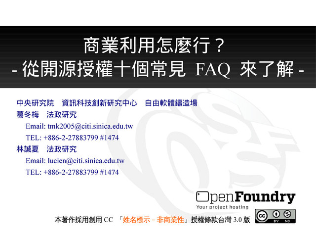 林誠夏,網路暱稱 "Lucien" 或 "lucien.cc"。2005 年開始任職於中央研究院自由軟體鑄造場,專職於自由開源軟體授權條款的 解說分析;其後因觸類旁通之故,一併協助有興趣的朋友共同研議 Open Content、Open Hardware 與 Open Data 方面的授權疑問,期許自己持續朝開放授權知識分享的路子邁進。詳細個人資訊:http://tw.linkedin.com/in/lucienchlin