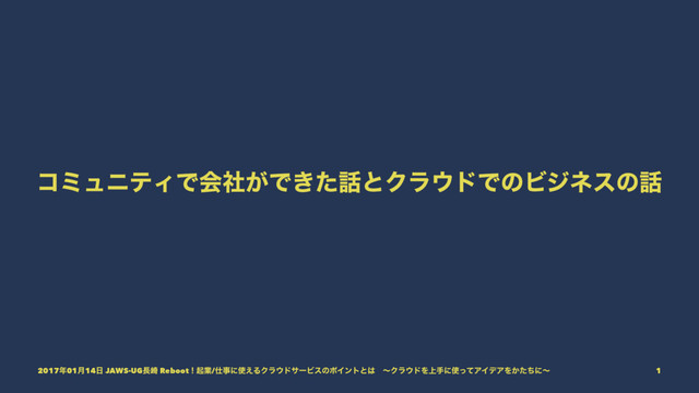 ίϛϡχςΟͰձ͕ࣾͰ͖ͨͱΫϥυͰͷϏδωεͷ 201701݄14 JAWS-UG࡚ Rebootʂىۀ/ࣄʹ͑ΔΫϥυαʔϏεͷϙΠϯτͱɹʙΫϥυΛ্खʹͬͯΞΠσΞΛ͔ͨͪʹʙ 1