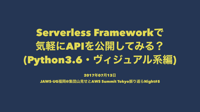 Serverless FrameworkͰ ؾܰʹAPIΛެ։ͯ͠ΈΔʁ (Python3.6ɾϰΟδϡΞϧܥฤ) 201707݄13 JAWS-UGԬ@ूஂࢁݟͤͱAWS Summit TokyoৼΓฦΒNight#5