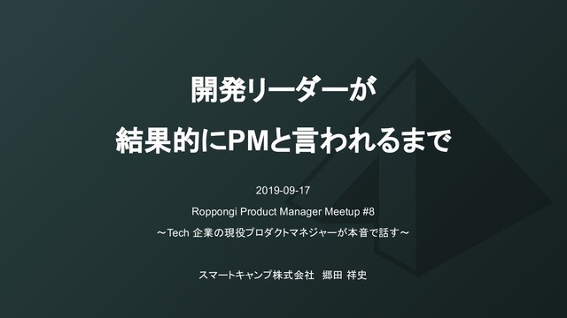 開発リーダーが 結果的にPMと言われるまで 2019-09-17 Roppongi Product Manager Meetup #8 〜Tech 企業の現役プロダクトマネジャーが本音で話す〜