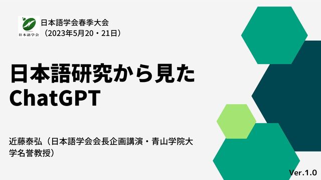 日本語研究から見た ChatGPT 近藤泰弘(日本語学会会長企画講演・青山学院大 学名誉教授) 日本語学会春季大会 (2023年5月20・21日) Ver.1.0