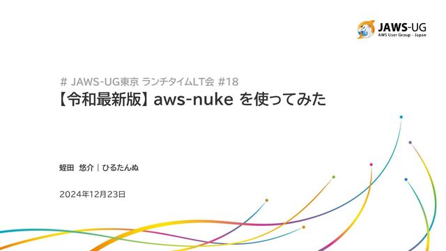 # JAWS-UG東京 ランチタイムLT会 #18 【令和最新版】 aws-nuke を使ってみた 蛭田 悠介 |