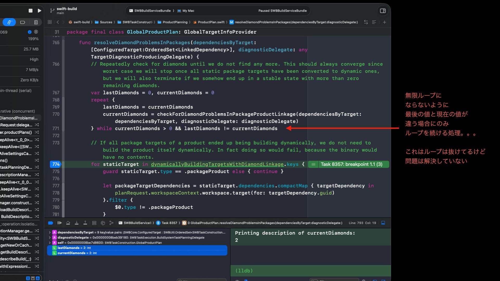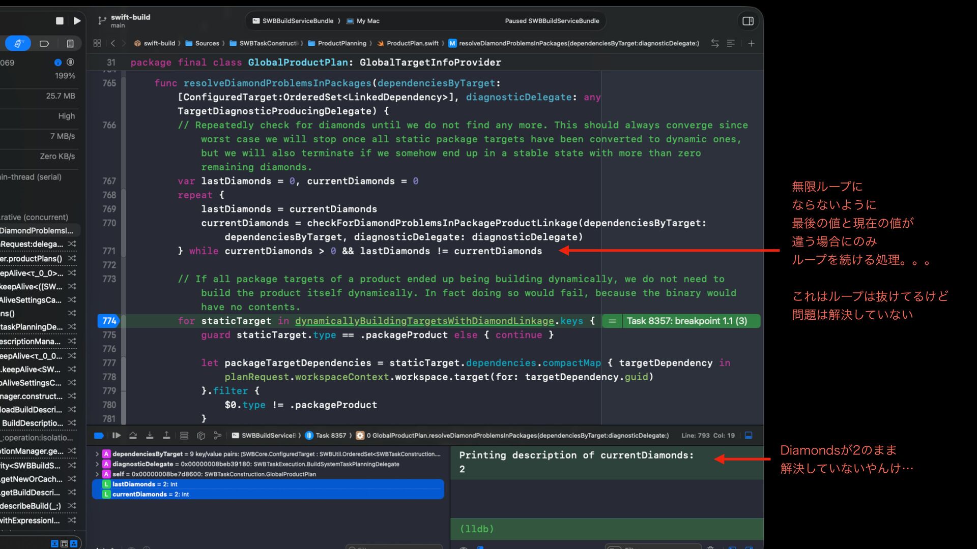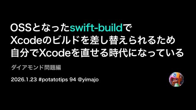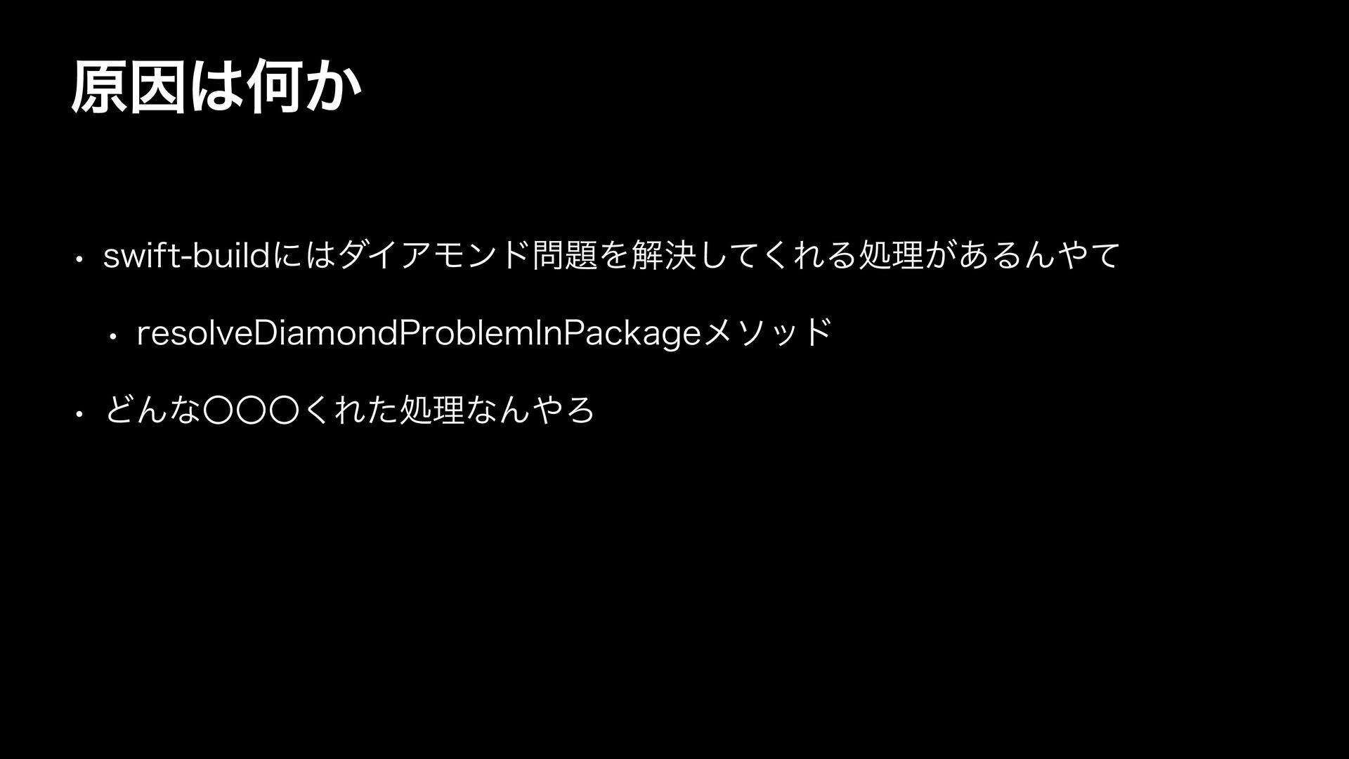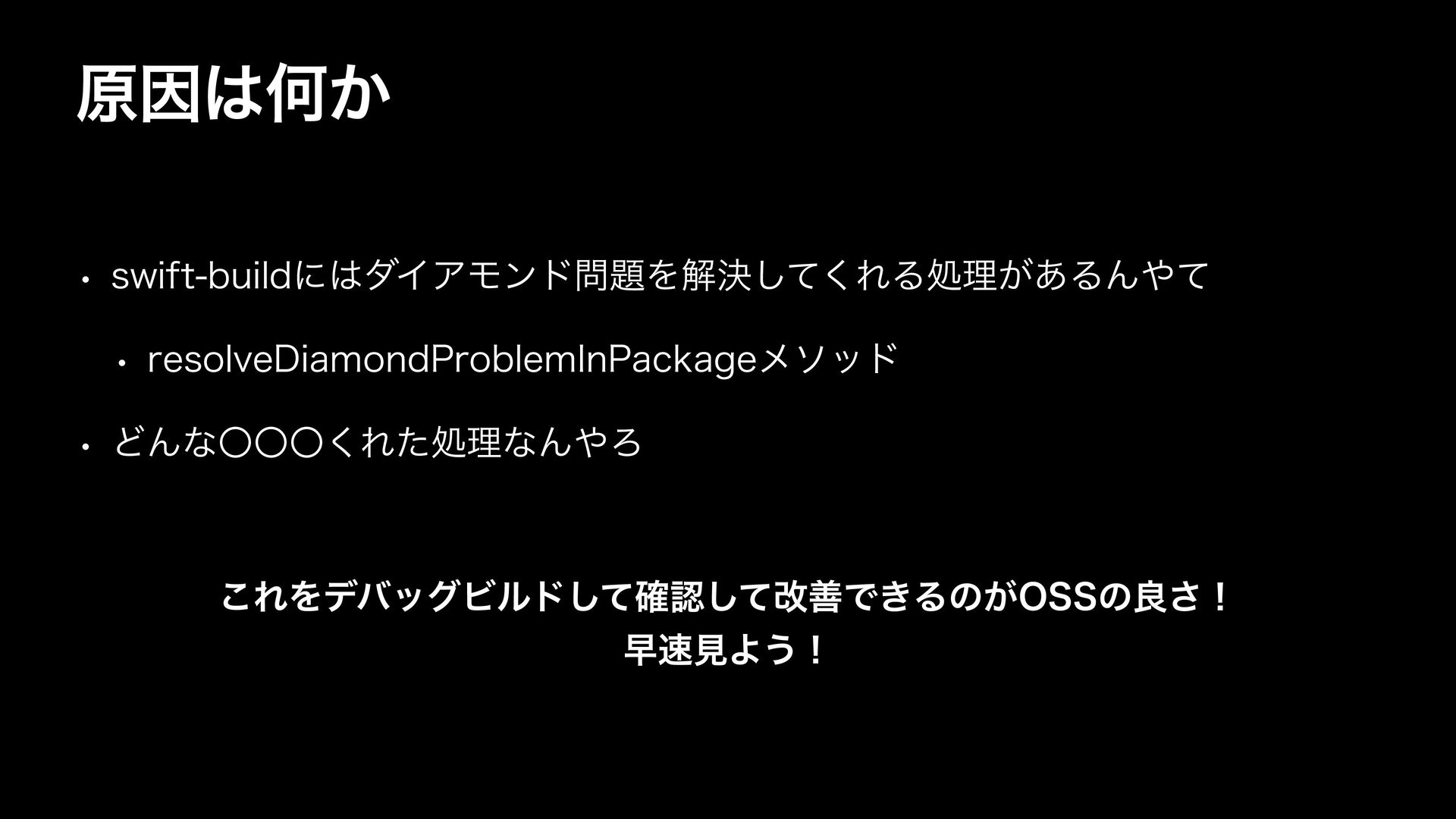 OSSとなったswift-buildで Xcodeのビルドを差し替えられるため 自分でXcodeを直せる時代になっている ダイアモンド問題編