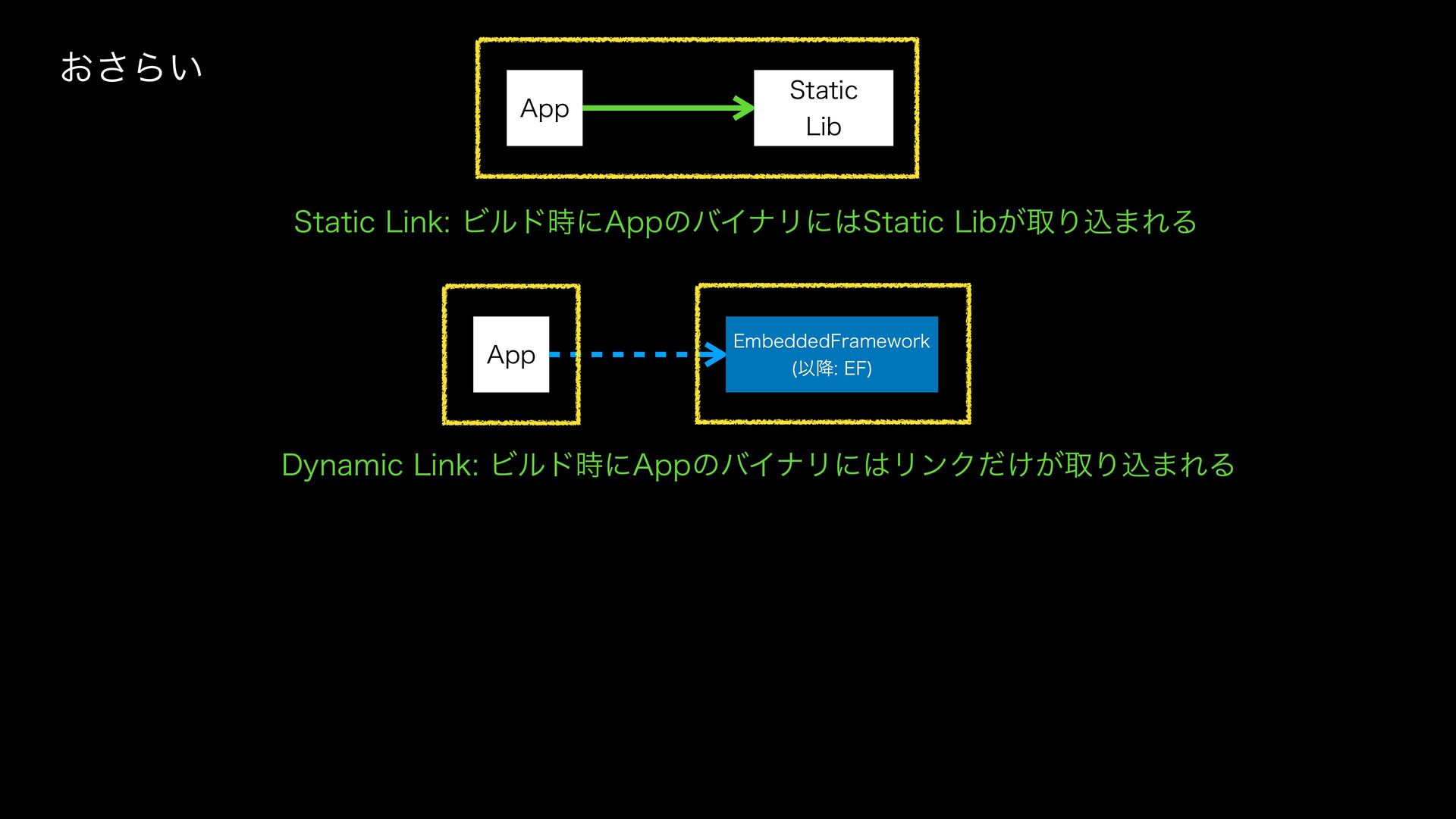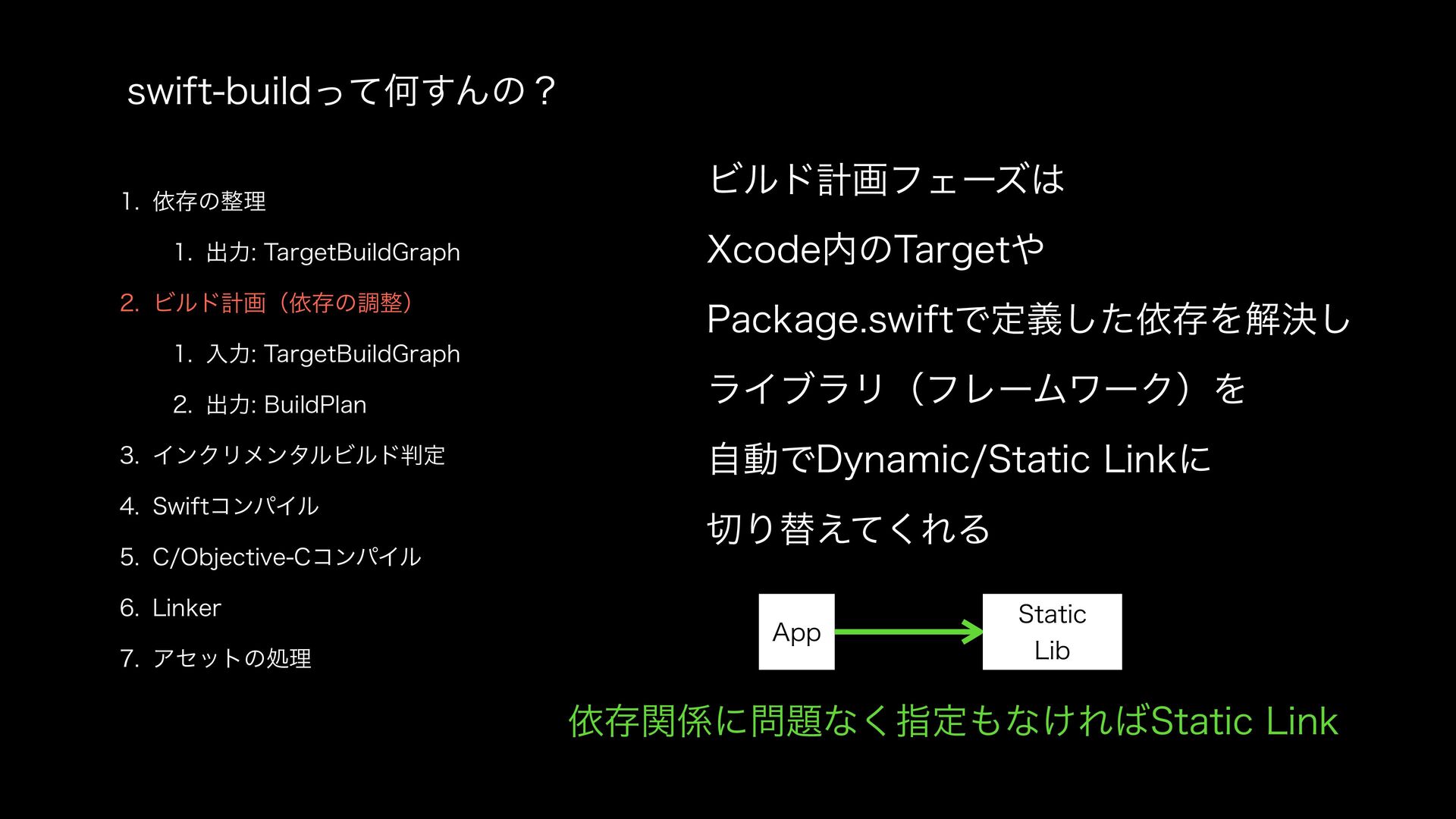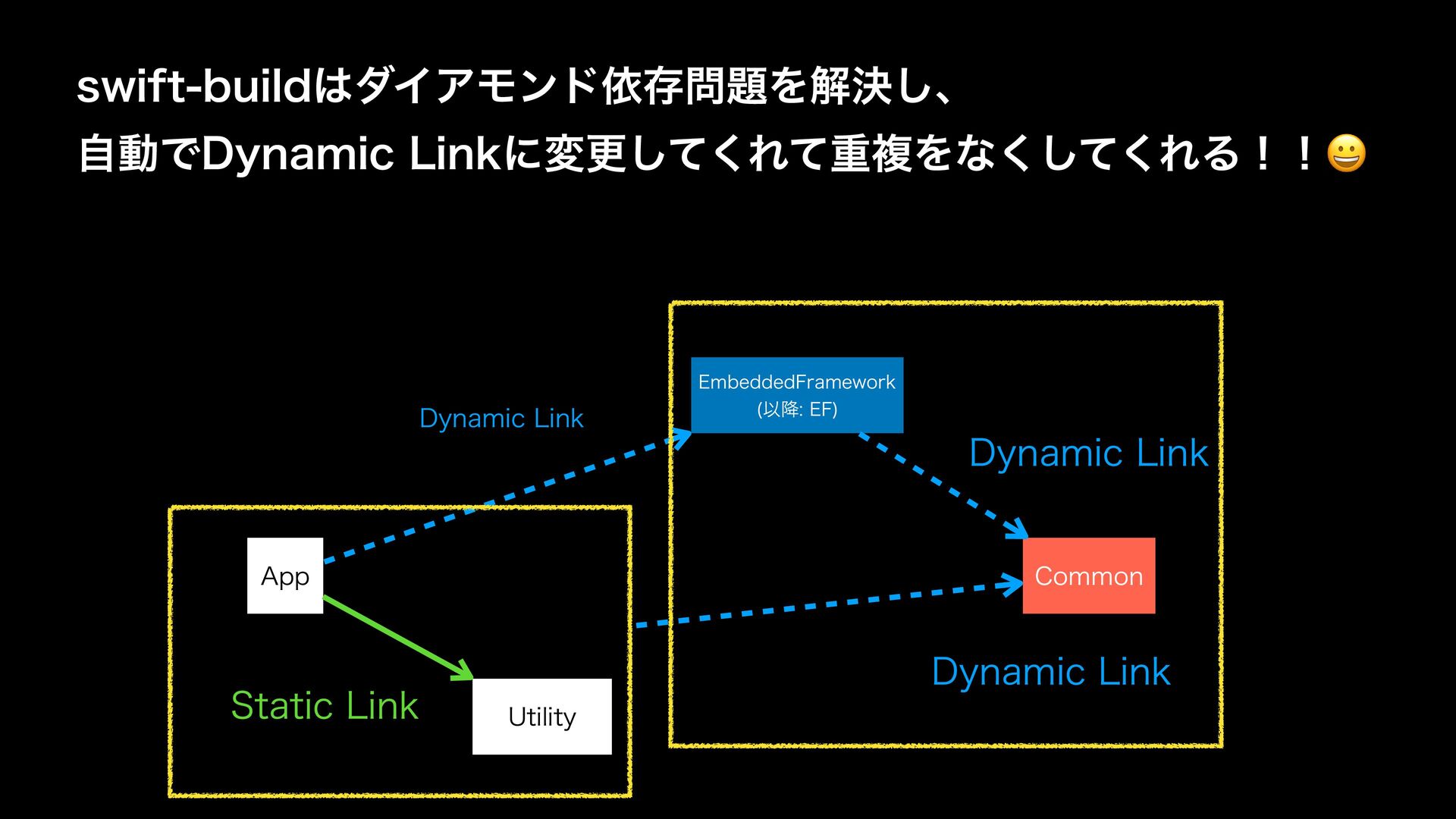 ग़ྗ#VJME1MBO  ΠϯΫϦϝϯλϧϏϧυ൑ఆ  4XJGUίϯύΠϧ  $0CKFDUJWF$ίϯύΠϧ  -JOLFS  Ξηοτͷॲཧ ϏϧυܭըϑΣʔζ͸ 9DPEF಺ͷ5BSHFU΍ 1BDLBHFTXJGUͰఆٛͨ͠ґଘΛղܾ͠ ϥΠϒϥϦʢϑϨʔϜϫʔΫʣΛ ࣗಈͰ%ZOBNJD4UBUJD-JOLʹ ੾Γସ͑ͯ͘ΕΔ "QQ 4UBUJD -JC ґଘؔ܎ʹ໰୊ͳ͘ࢦఆ΋ͳ͚Ε͹4UBUJD-JOL