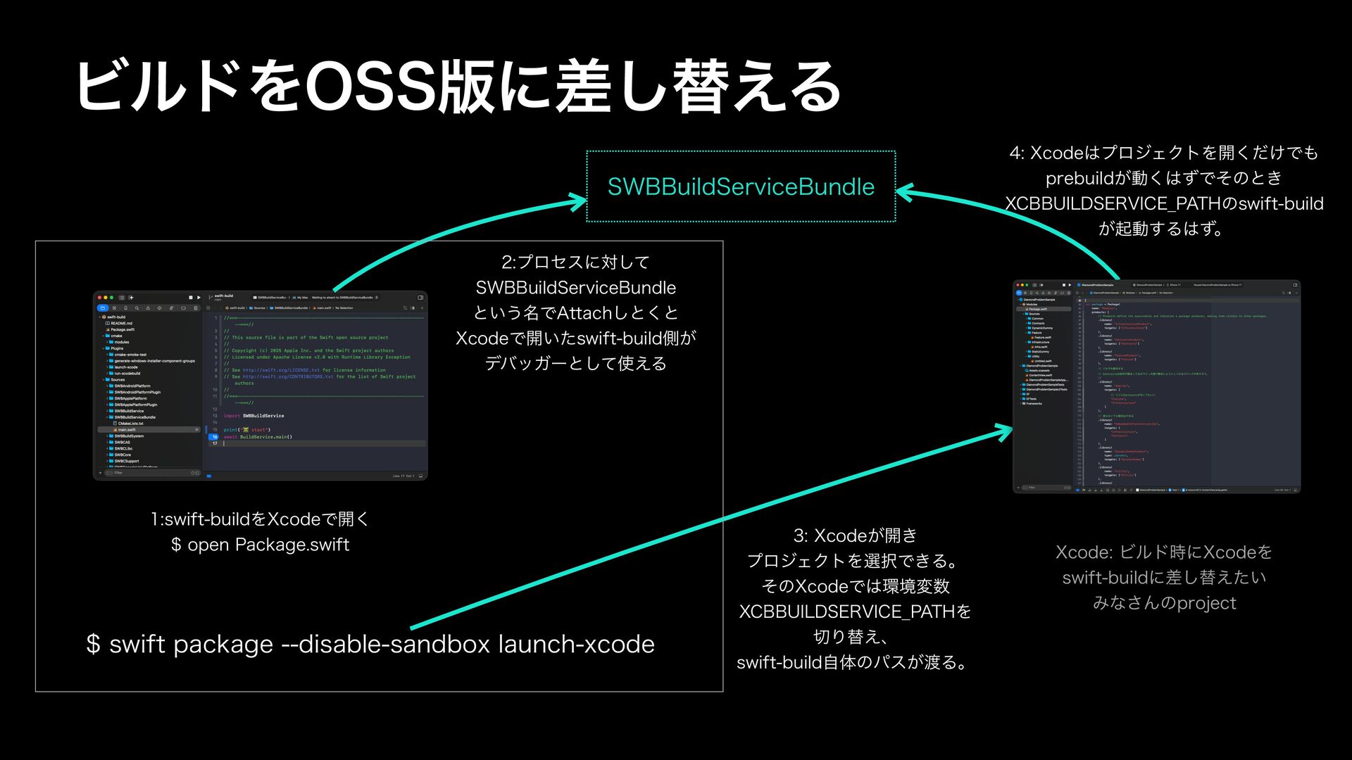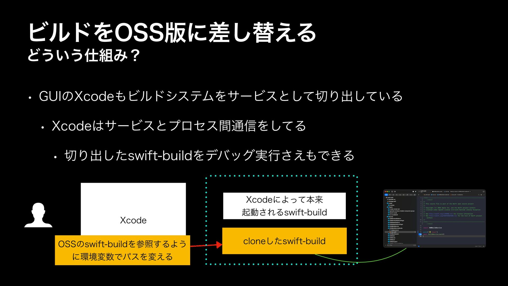 OSSとなったswift-buildで Xcodeのビルドを差し替えられるため 自分でXcod...
