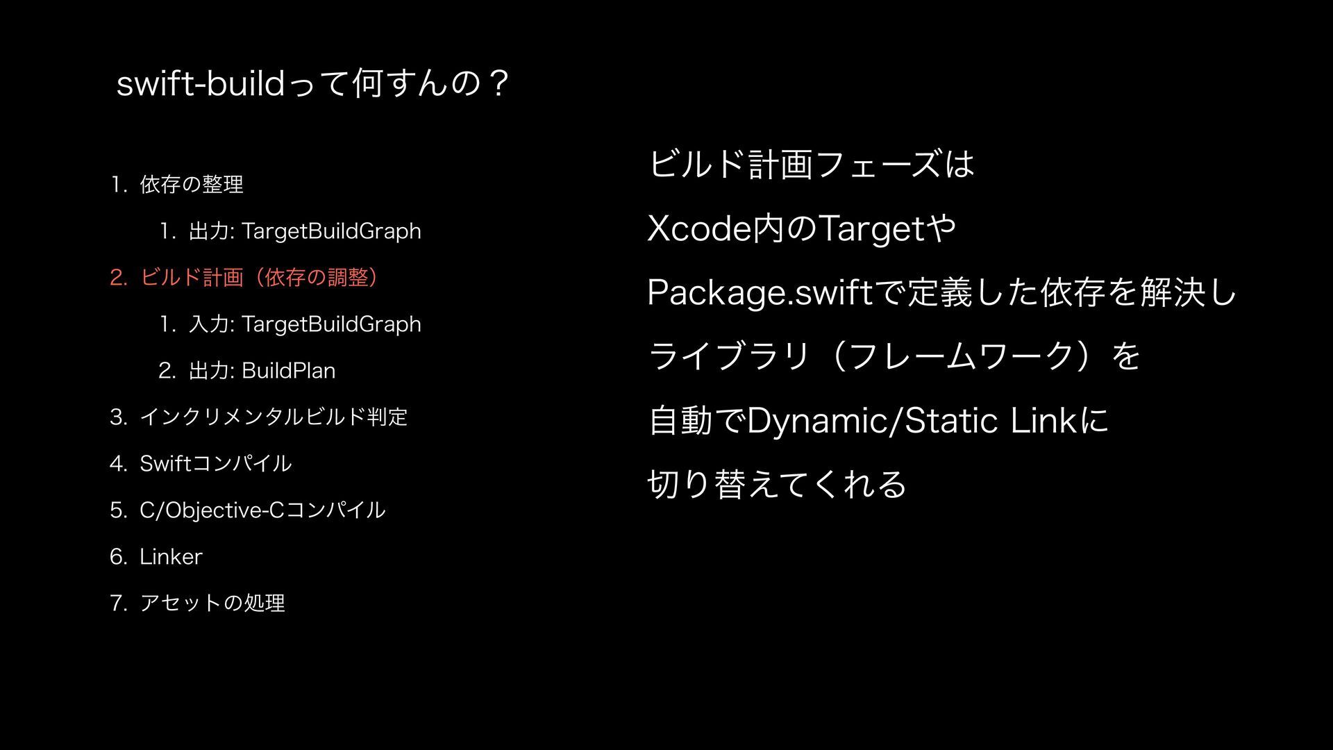 ग़ྗ#VJME1MBO  ΠϯΫϦϝϯλϧϏϧυ൑ఆ  4XJGUίϯύΠϧ  $0CKFDUJWF$ίϯύΠϧ  -JOLFS  Ξηοτͷॲཧ ϏϧυܭըϑΣʔζ͸ 9DPEF಺ͷ5BSHFU΍ 1BDLBHFTXJGUͰఆٛͨ͠ґଘΛղܾ͠ ϥΠϒϥϦʢϑϨʔϜϫʔΫʣΛ ࣗಈͰ%ZOBNJD4UBUJD-JOLʹ ੾Γସ͑ͯ͘ΕΔ
