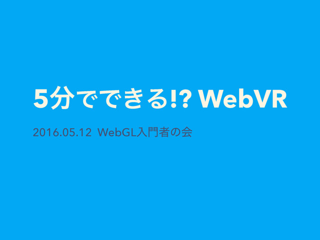 5ͰͰ͖Δ!? WebVR 2016.05.12 WebGLೖऀͷձ