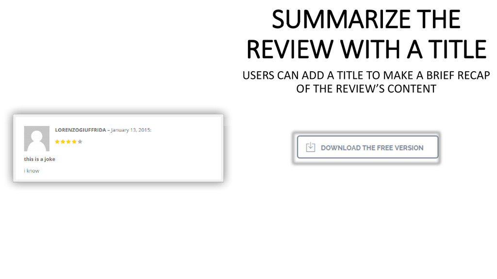 Reviews are the key element of an e-commerce site: the feedbacks of the customers that have already bought a product or a service in your site are vital for your activity to obtain online credibility.