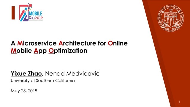 Presentation slides of the paper "A Microservice Architecture for Online Mobile App Optimization" at the International Conference on Mobile Software Engineering and Systems (MOBILESoft) 2019.