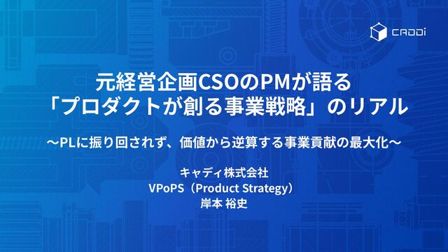 元経営企画CSOのPMが語る 「プロダクトが創る事業戦略」のリアル 〜PLに振り回されず、価値から逆算する事業貢献の最⼤化〜 キャディ株式会社 VPoPS(Product Strategy) 岸本 裕史