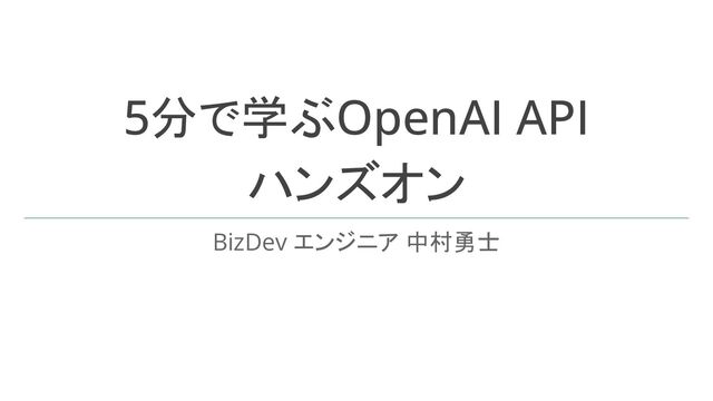 5分で学ぶOpenAI API ハンズオン BizDev エンジニア 中村勇士