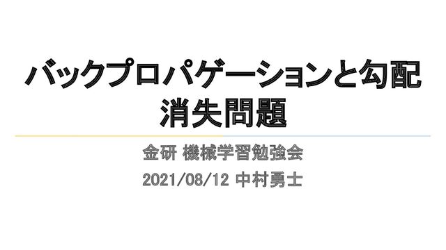 バックプロパゲーションと勾配 消失問題 金研 機械学習勉強会 2021/08/12 中村勇士