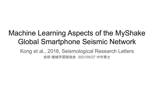 Machine Learning Aspects of the MyShake Global Smartphone Seismic Network, Kong et al., 2018, Seismological Research Letters