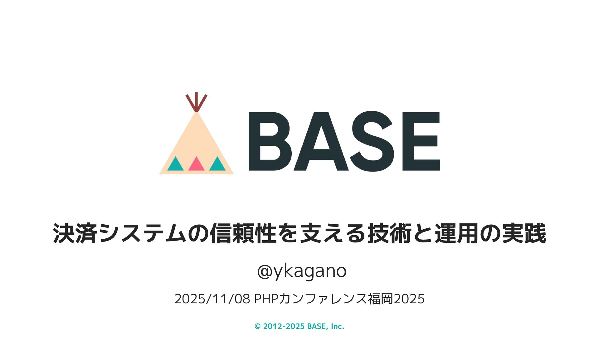 © 2012-2025 BASE, Inc. 2025/11/08 PHPカンファレンス福岡2025 決済システムの信頼性を支える技術と運用の実践 1 @ykagano