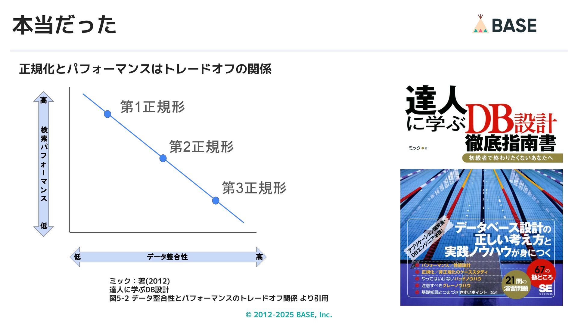 © 2012-2025 BASE, Inc. 本当だった 13 正規化とパフォーマンスはトレードオフの関係 検 索 パ