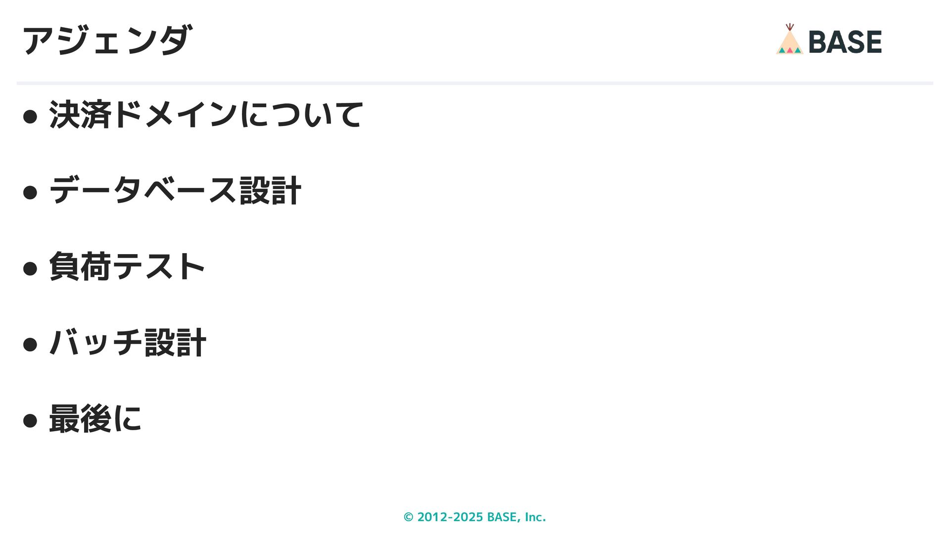 © 2012-2025 BASE, Inc. アジェンダ 4 • 決済ドメインについて • データベース設計