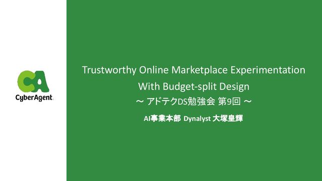 Trustworthy Online Marketplace Experimentation With Budget-split Design 〜 アドテクDS勉強会 第9回