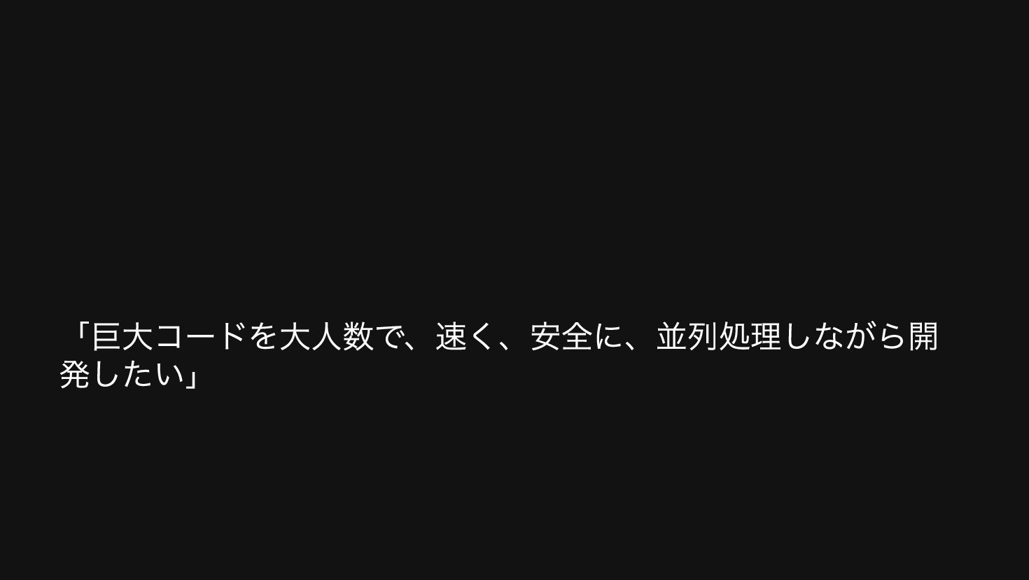 「巨大コードを大人数で、速く、安全に、並列処理しながら開 発したい」