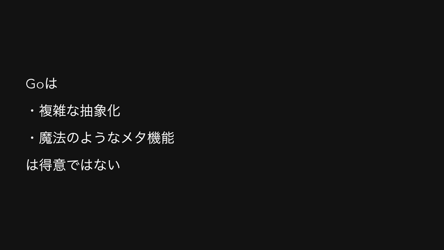 Go は ・複雑な抽象化 ・魔法のようなメタ機能 は得意ではない