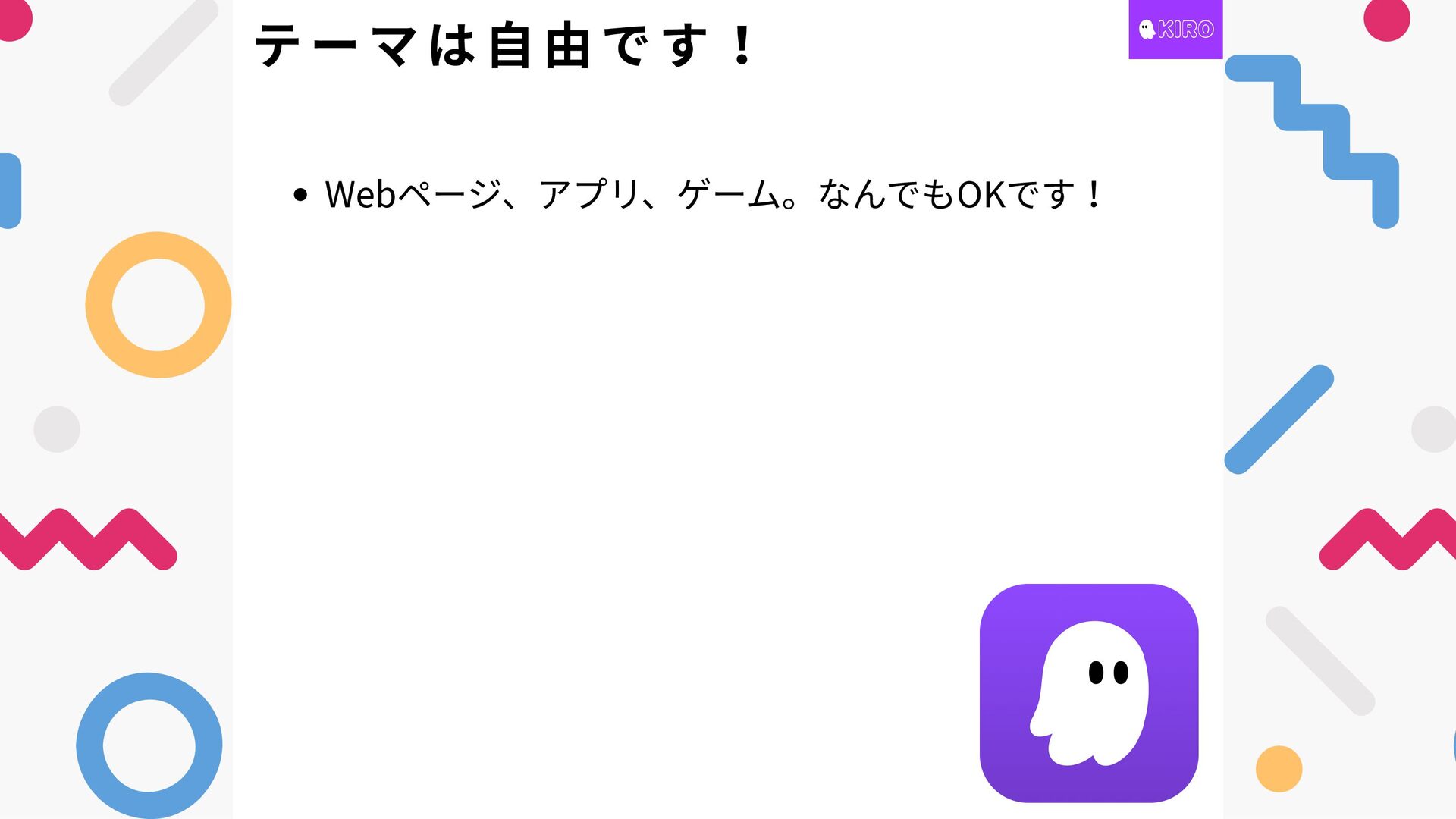テーマは自由です! Webページ、アプリ、ゲーム。なんでもOKです!