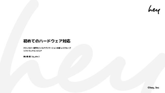 ɹɹ ©︎ hey, Inc 初めてのハードウェア対応 テクノロジー部門モバイルアプリケーション本部 レジグループ ソフトウェアエンジニア 横小路 健(@_ykkc)
