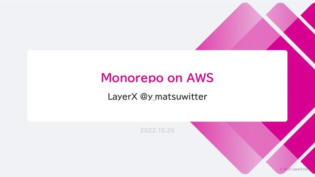 ./terraform └package.json └Makefile └Makefile 言語やPFごとに要件は異なる。 それぞれの言語ごとに合わせた Makefileやpackage.jsonを 用意。 Setup, Build, Run, Test, Lintなどの機能をそれぞれで愚 直に実装する方法を取る。 . ├── Makefile ├── README.md ├── containers │ ├── api │ └── migration ├── docker-compose.yml ├── go │ ├── Makefile │ ├── README.md │ ├── cmds │ ├── ent │ ├── go.mod │ ├── go.sum │ ├── gqlgen.yml │ ├── graph │ ├── pkg │ ├── sam │ ├── seed │ ├── services │ └── tools.go ├── package.json ├── terraform │ ├── Makefile │ ├── README.md │ ├── aws │ ├── buildspec.yml │ └── policy ├── typescript │ ├── README.md │ ├── buildspec.yml │ ├── codegen.yml │ ├── package-lock.json │ ├── package.json │ ├── public │ ├── src │ ├── tsconfig.json │ └── yarn.lock └── yarn.lock 図:とあるプロダクトの構成