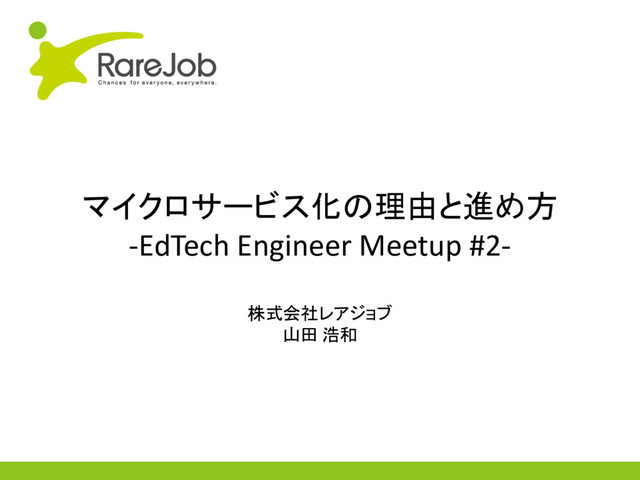 レアジョブの紹介と今開発を進めているマイクロサービス化の理由とどう進めているかについての内容となります。