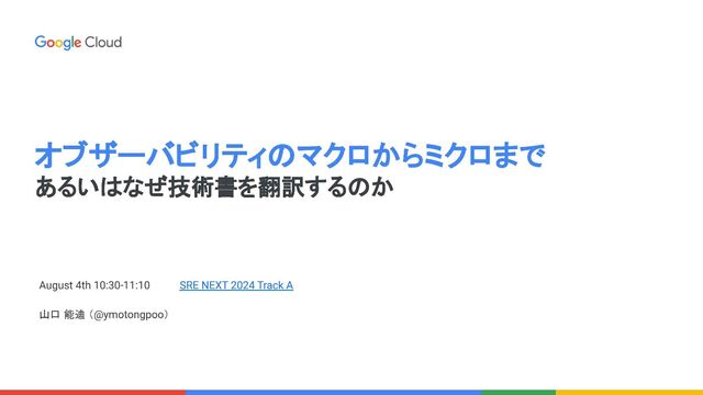 SREの中でも最も重要なプラクティスであるオブザーバビリティですが、これはシステムや組織のどのレベルで持つべきものなのでしょうか。マクロなレベルで持つオブザーバビリティと、ミクロなレベルで持つオブザーバビリティは大局的には同じでも、細かな部分ではそのサイクルを含めて異なってきます。本セッションでは組織でオブザーバビリティを導入する際の大局的なサイクルと、開発チーム〜個人レベルでのミクロのサイクルの違いを紹介し、組織における各単位で必要となる戦略を詳らかにします。 また私がさまざまなSRE関連書籍を翻訳・監訳しているの理由を、この観点から紹介します。SREの実践の各段階にある方々に、各書籍の内容の紹介と、それらが先に紹介しているオブザーバビリティプロセスのどの段階を解説するものなのかの位置づけを解説し、先に紹介したプロセスをスムーズに実践するための足がかりにするためのポインターを提示します。