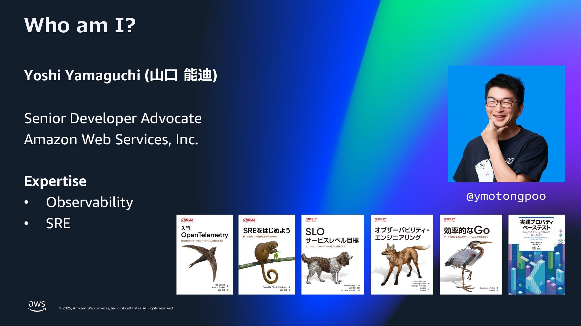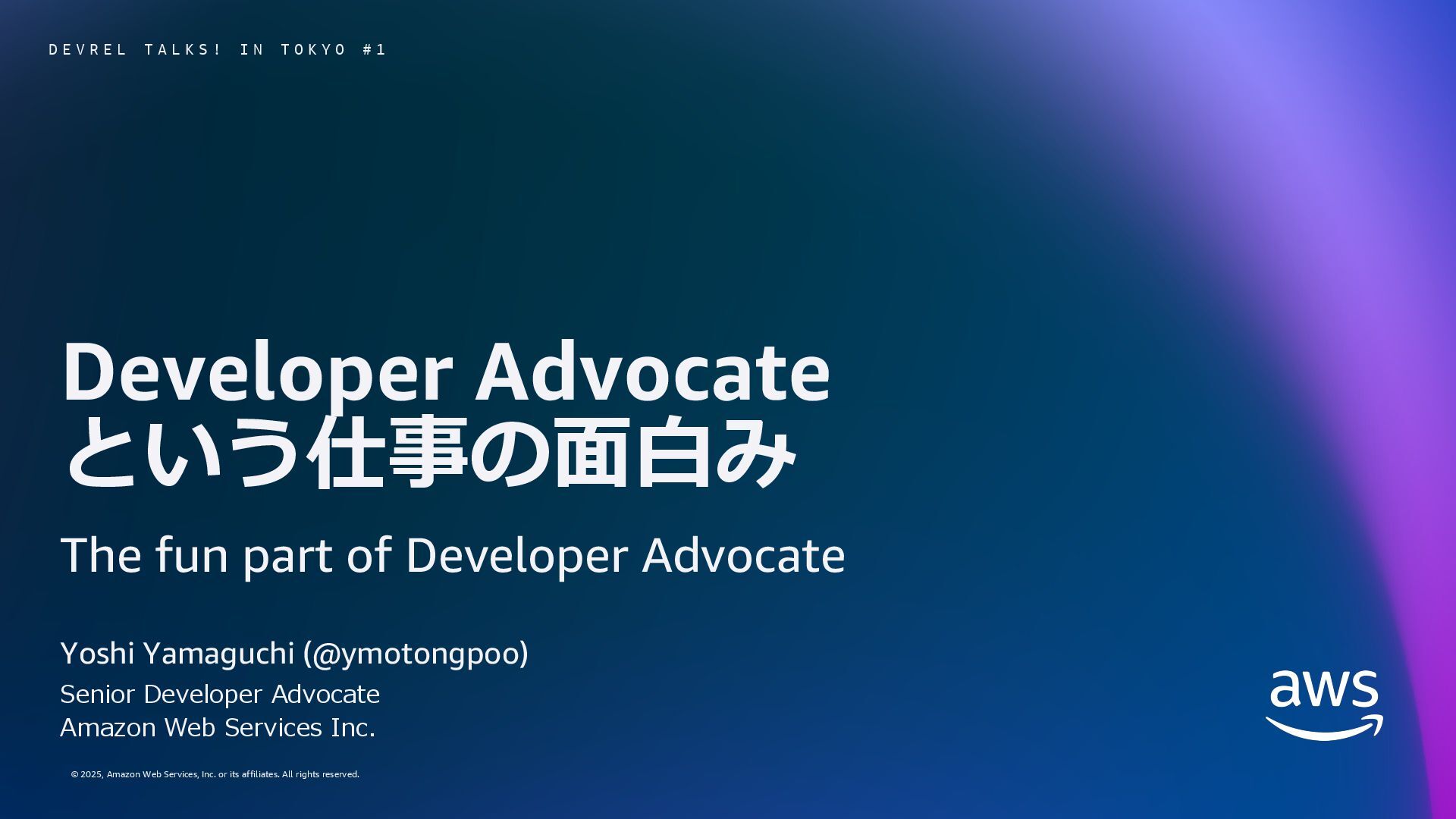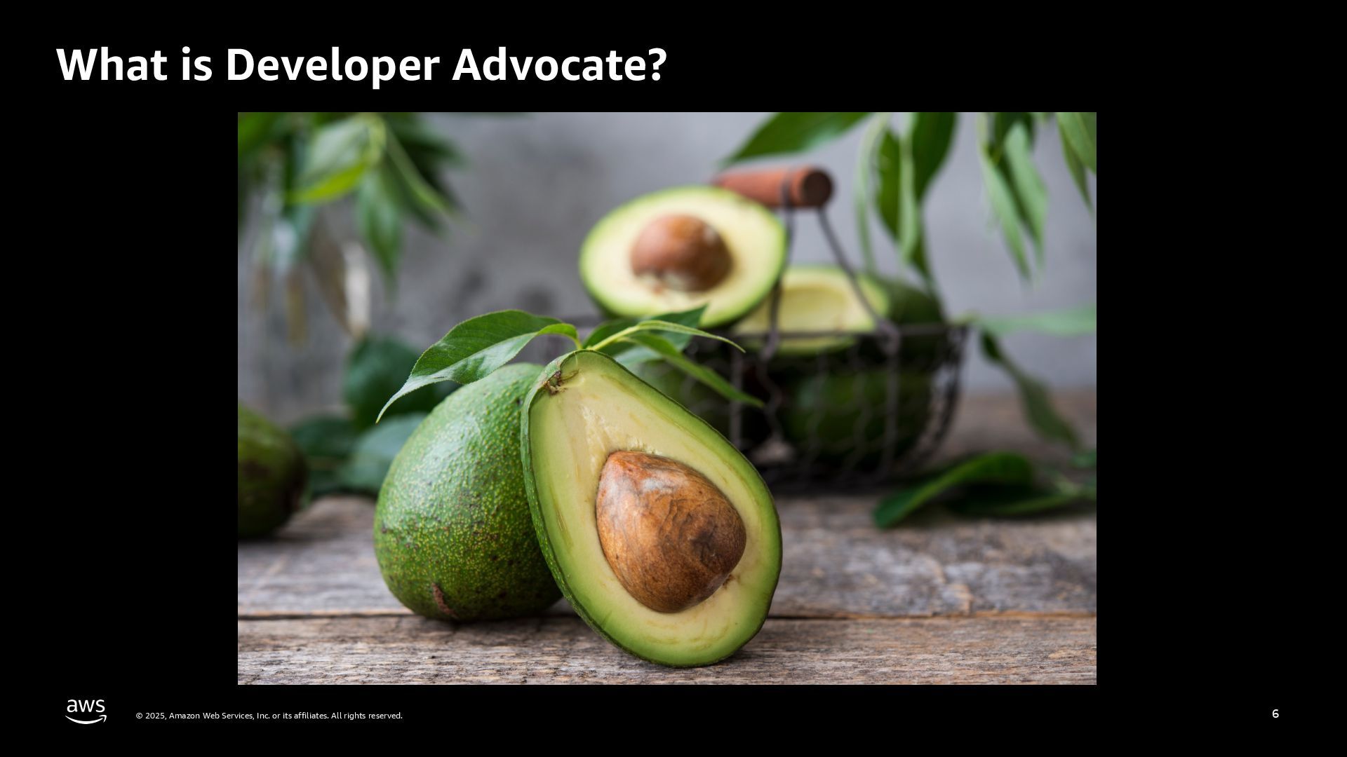 rights reserved. 5 My career Apr, 2008 Infra Engineer, Oracle Japan Apr, 2011 Associate Technical Account Manager – YouTube, Google Oct, 2013 Developer Advocate – YouTube Feb, 2014 Senior Developer Advocate – Partnership Jul, 2018 Senior Developer Relations Engineer – Google Cloud Nov, 2024 Senior Developer Advocate, Amazon Web Services