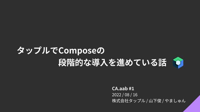 タップルでComposeの 段階的な導入を進めている話 CA.aab #1 2022 / 08 / 16 株式会社タップル
