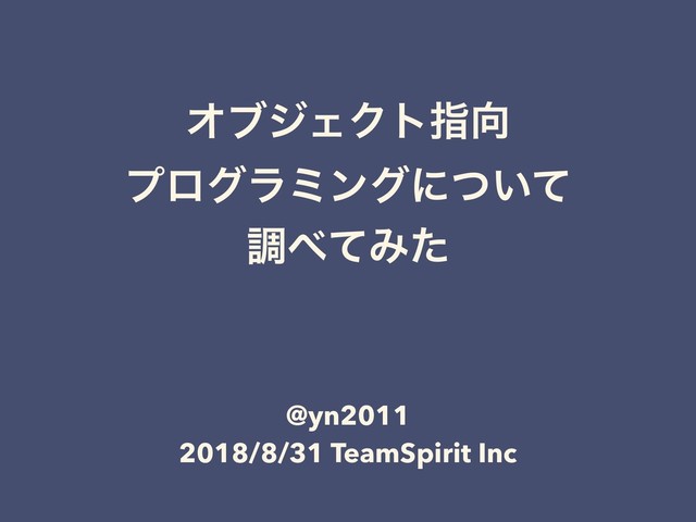 ΦϒδΣΫτࢦ ϓϩάϥϛϯάʹ͍ͭͯ ௐͯΈͨ @yn2011 2018/8/31 TeamSpirit Inc