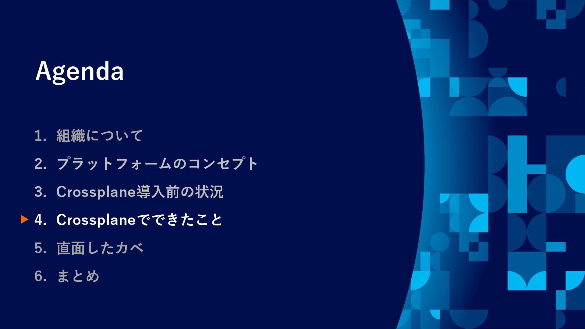 本セッションでは、Crossplaneの導入前の課題から導入後に直面した課題まで、リアルな体験をお話しします。