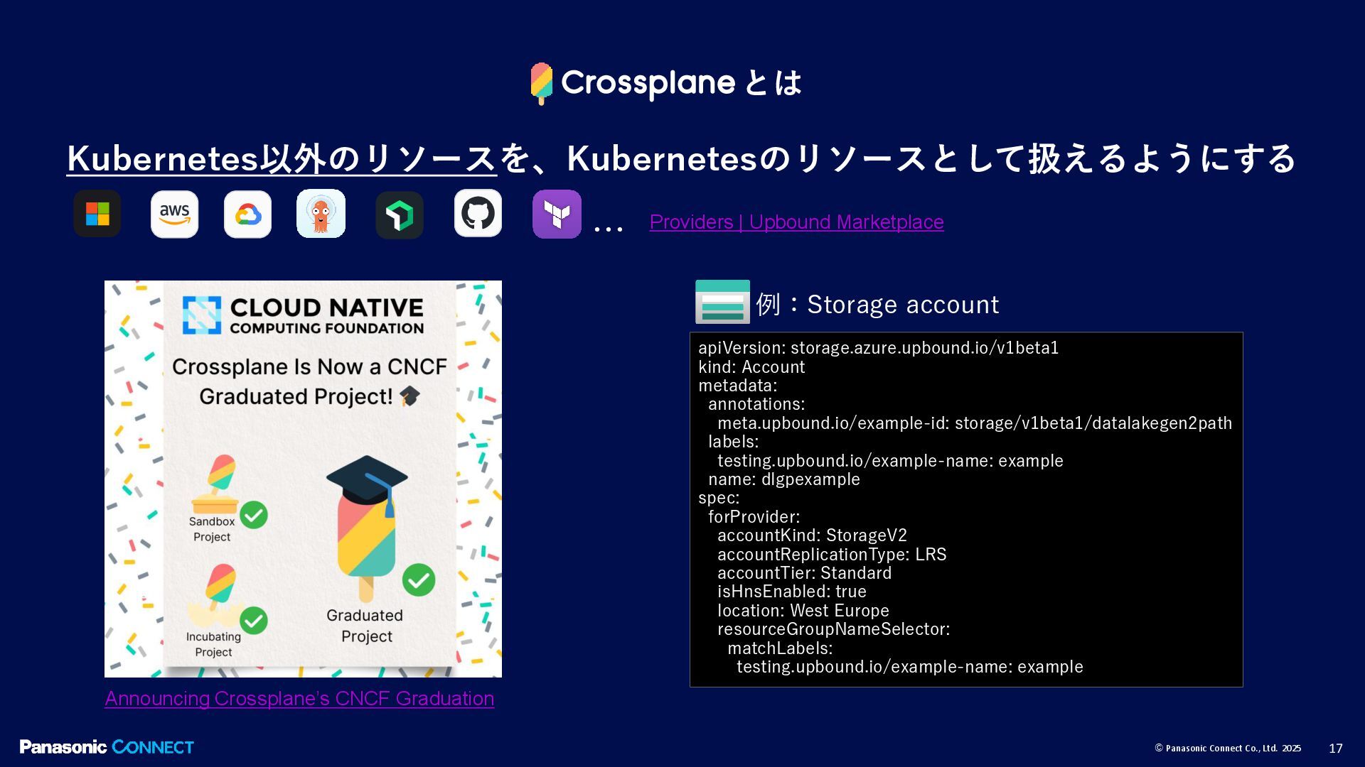 そんな中、Kubernetesと連携して、インフラ管理を飛躍させるCrossplaneに出会いました。