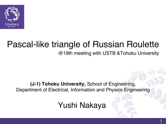 number of holes in the cylinder f(n,m) = probability player1 loses Number of players = 4 holes in the cylinder n = 5 number of bullets m = 5 1 2 2 3 2 3 1 1 1 1 1 1 1 2 1 1 3 5 3 5 4 5 1 1 2 3 3 4 7 10
