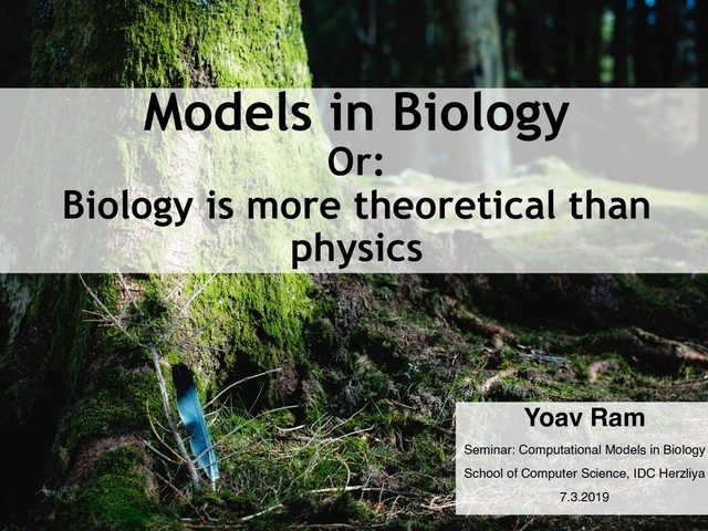 (1966) The strategy of model building in population biology. Am Sci 54(3):421–431. • Plutynski A (2007) Strategies of Model Building in Population Genetics. Philos Sci 73(5):755–764. • Gunawardena J (2013) Biology is more theoretical than physics. Mol Biol Cell 24(12):1827–1829. 35